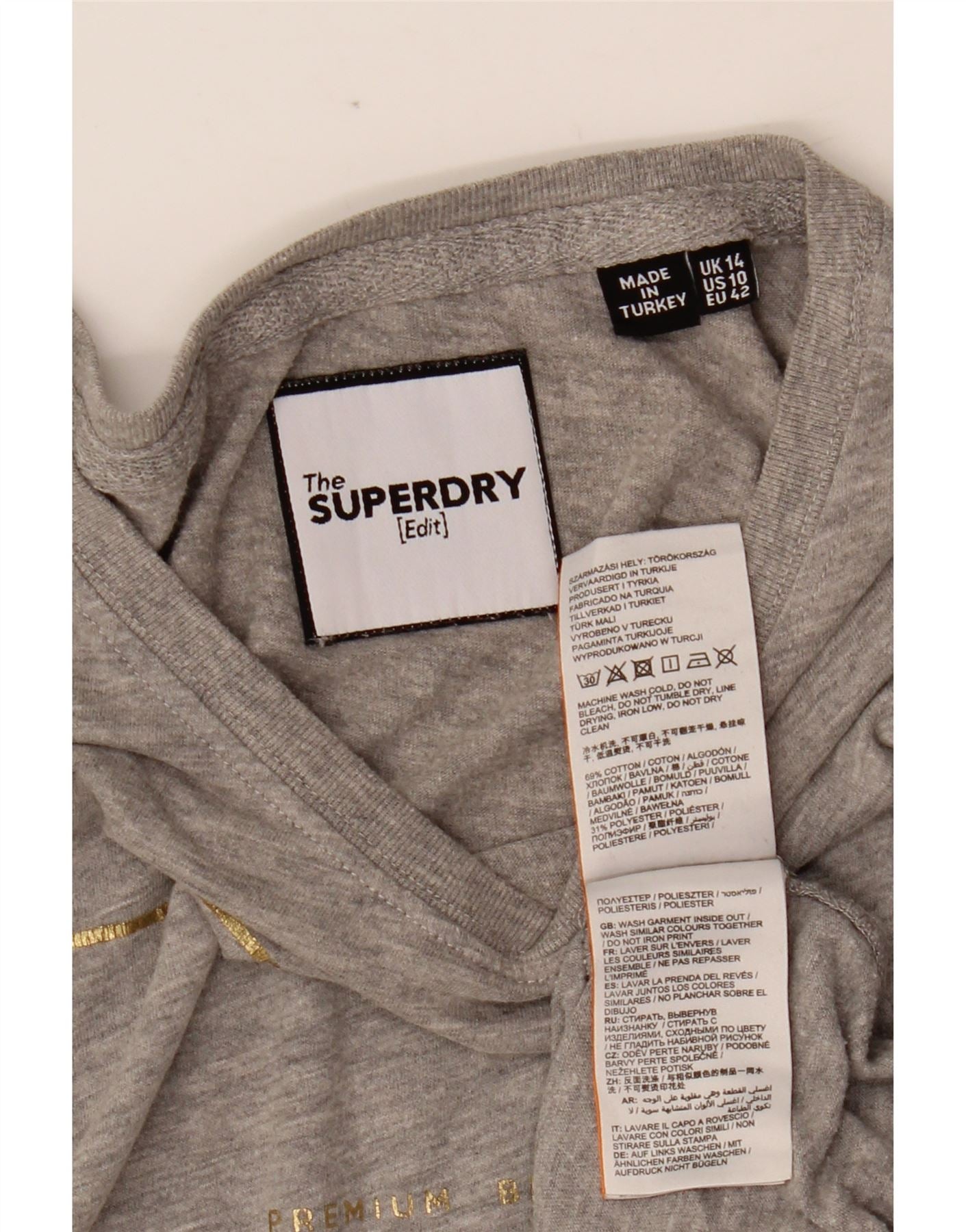 Camiseta feminina SUPERDRY com estampa gráfica UK 14 grande algodão cinza