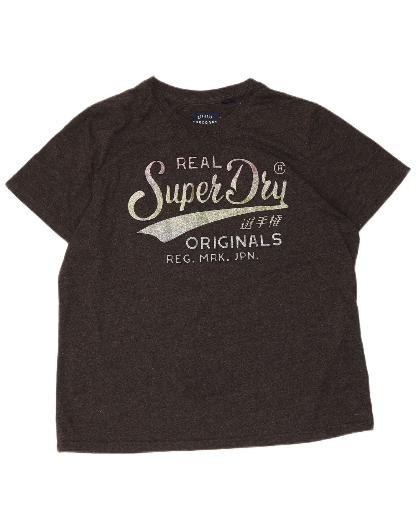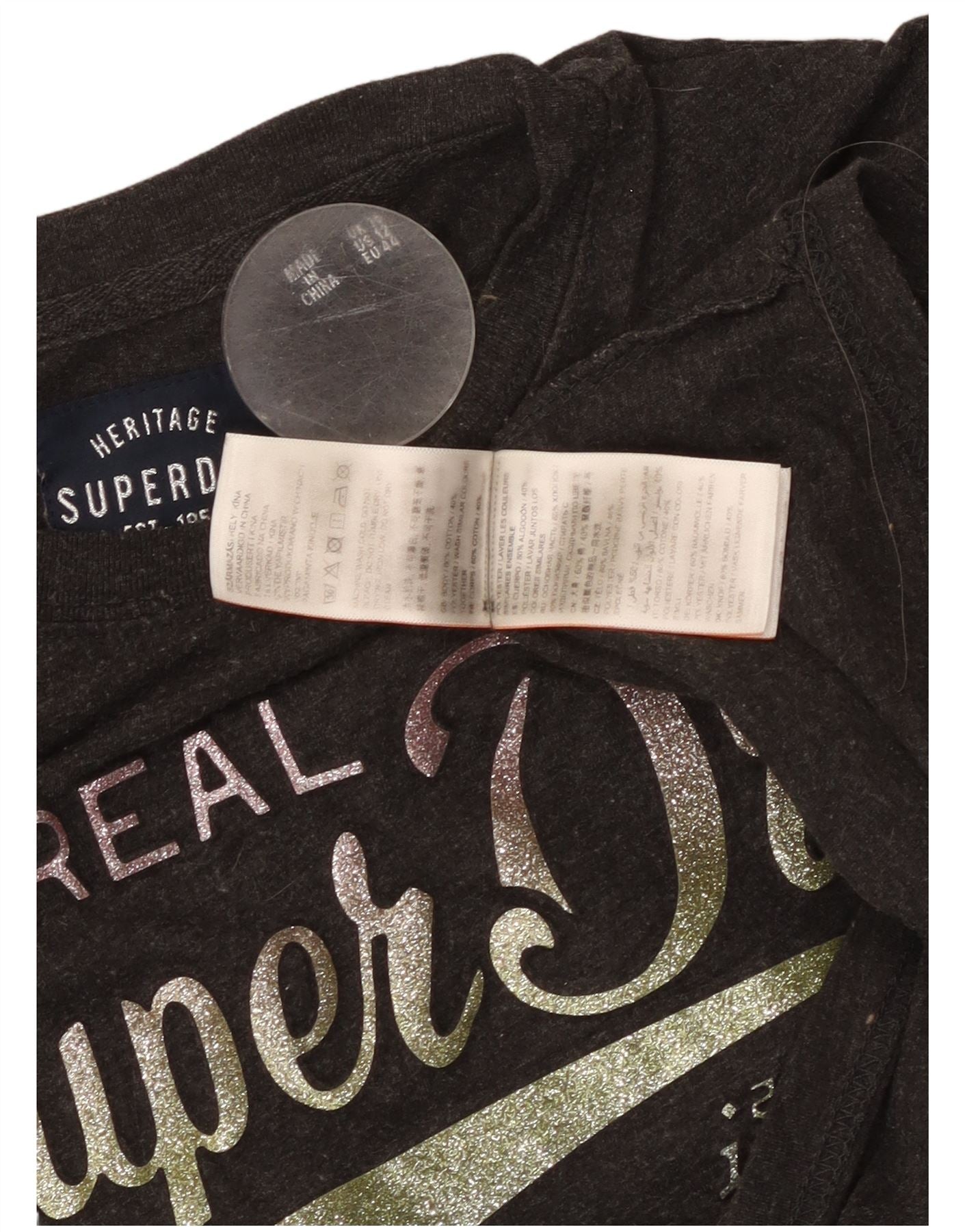 Camiseta feminina SUPERDRY com estampa gráfica UK 16 grande algodão manchado cinza