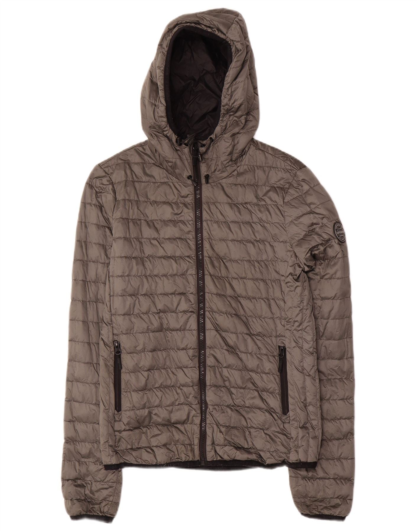 Jaqueta acolchoada com capuz feminina SUPERDRY UK 10 nylon cinza pequeno