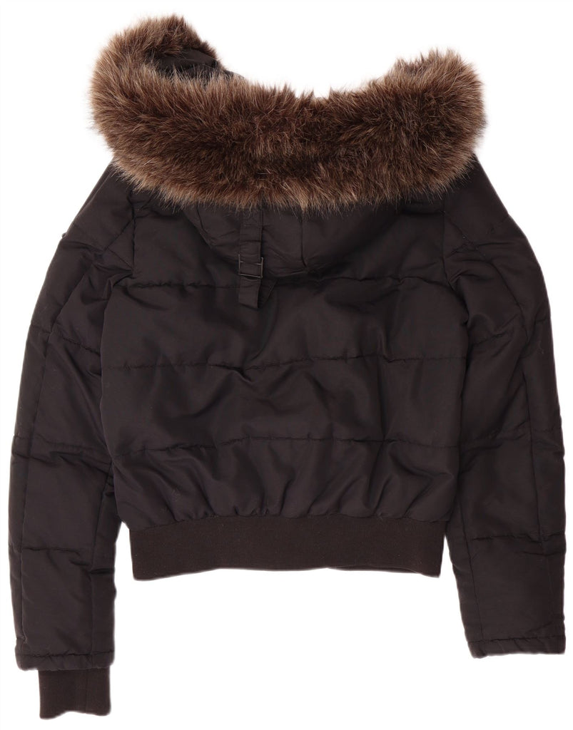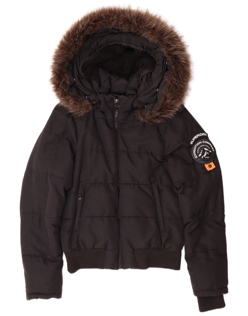 SUPERDRY Womens Hooded Padded Jacket UK 12 Medium Black Nylon
