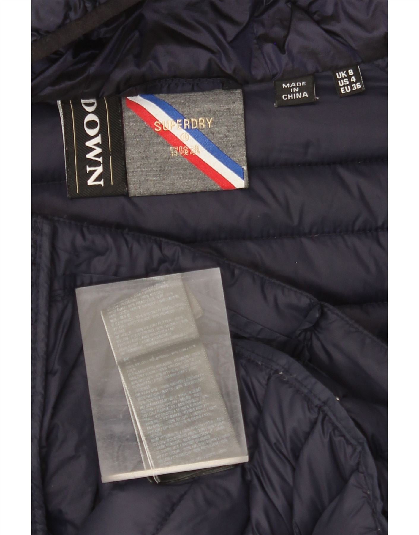 Jaqueta acolchoada com capuz feminina SUPERDRY UK 8 pequena azul marinho nylon