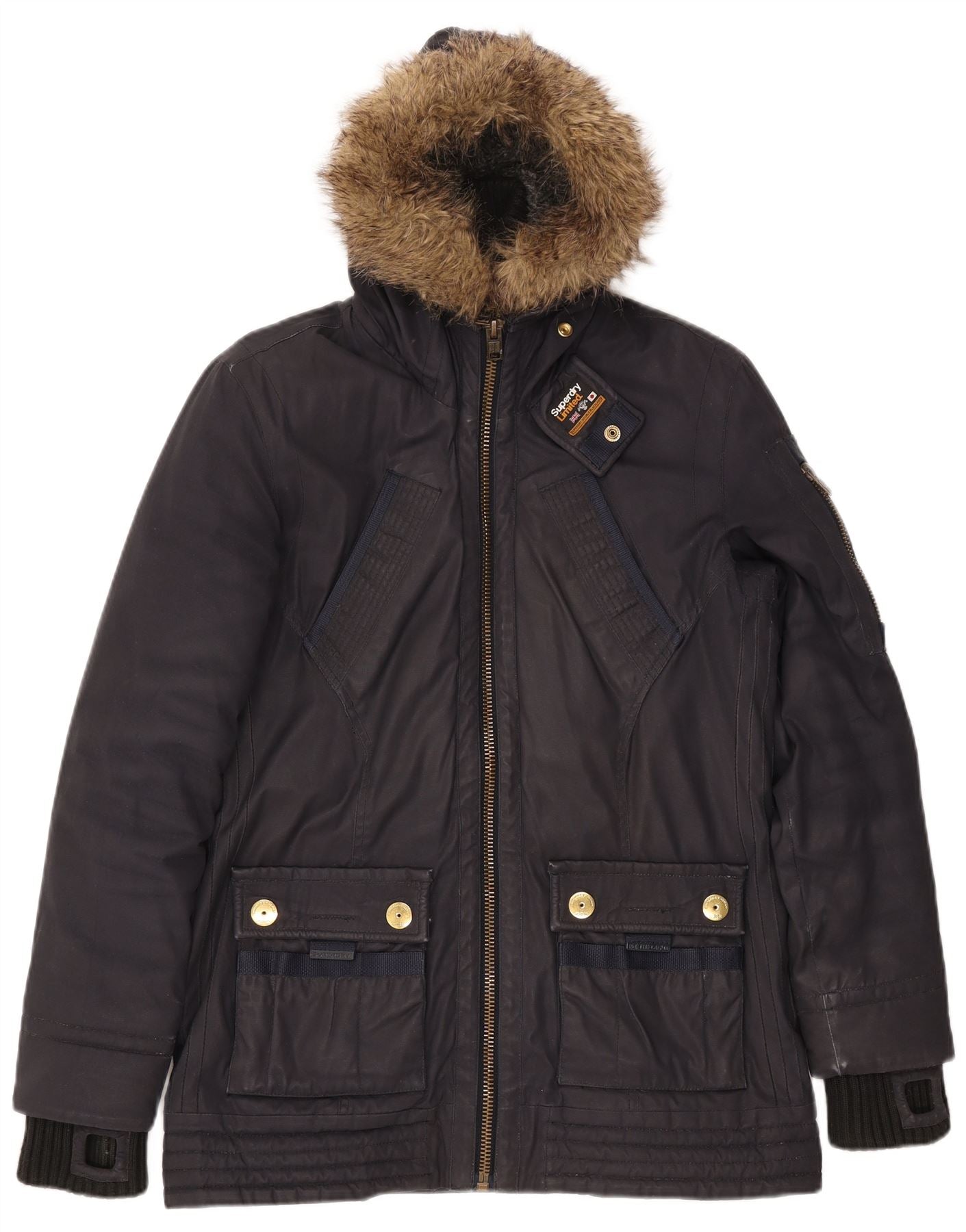Jaqueta parka feminina SUPERDRY com capuz Reino Unido 16 grande algodão azul marinho