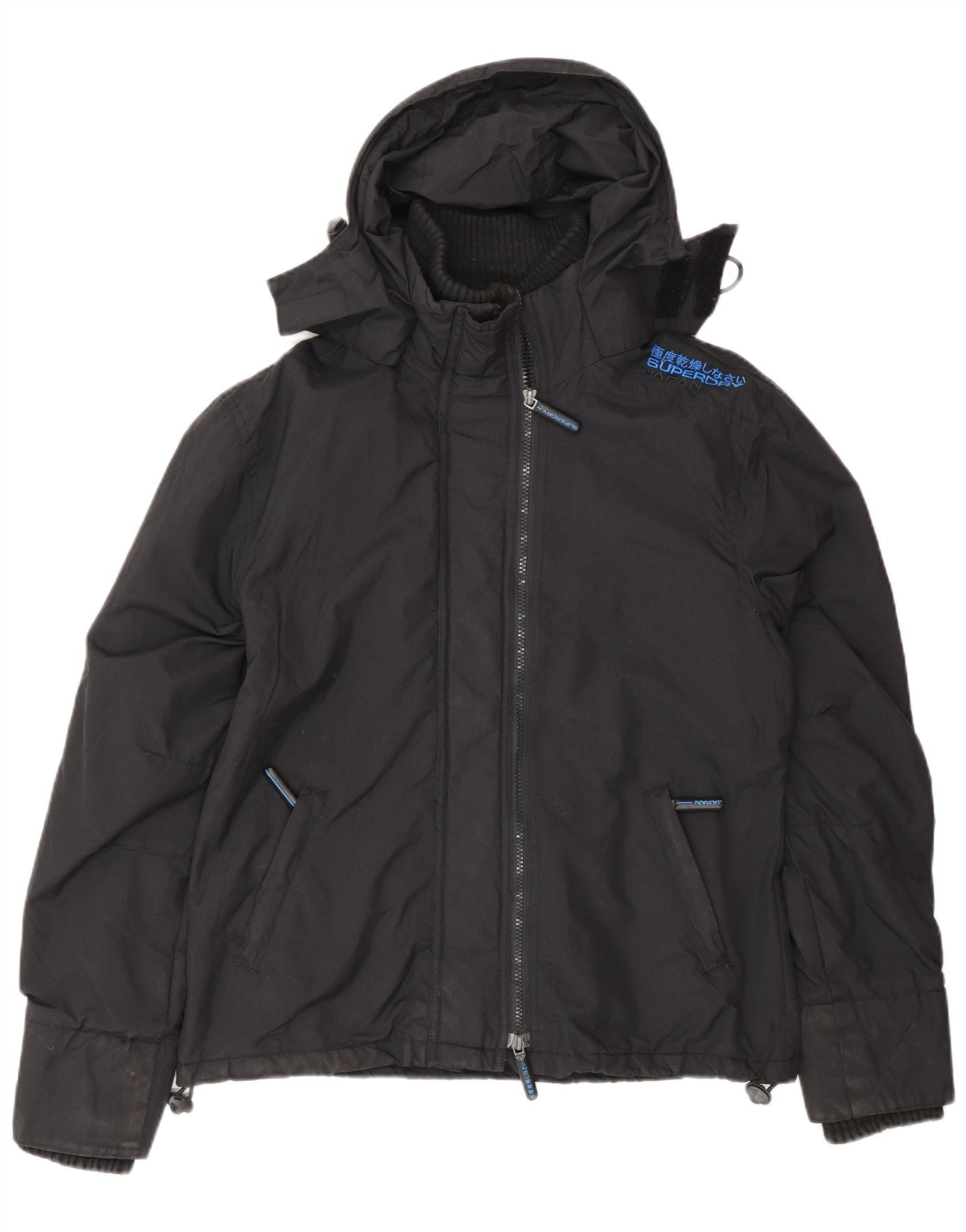 Jaqueta corta-vento feminina Superdry com capuz UK 18 XL preto nylon