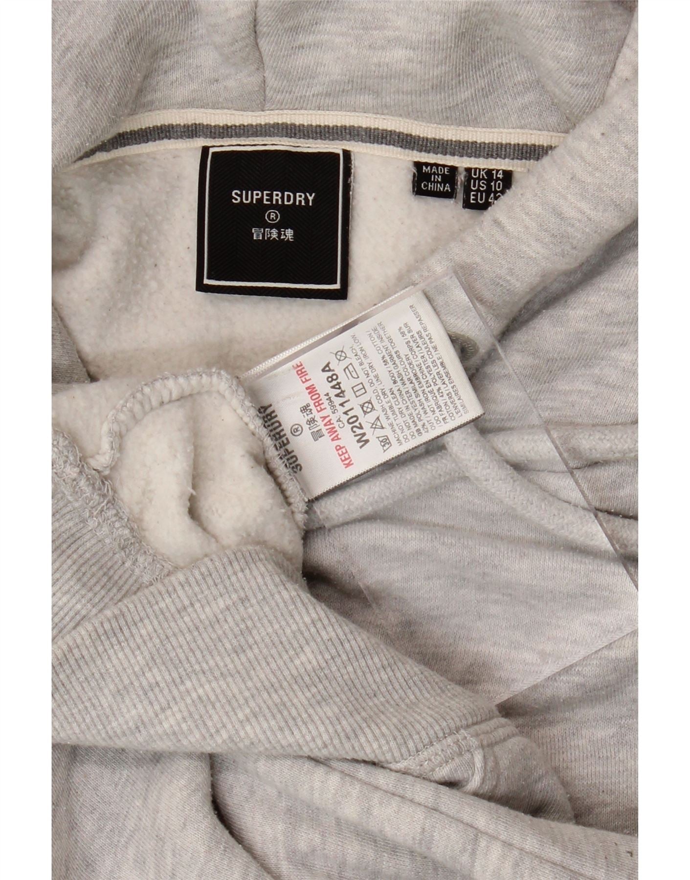 Jumper com capuz feminino SUPERDRY UK 14 grande algodão cinza