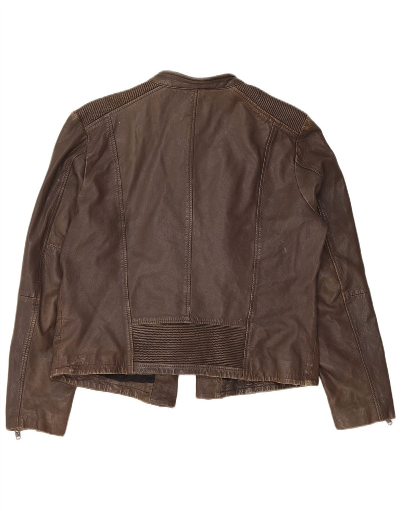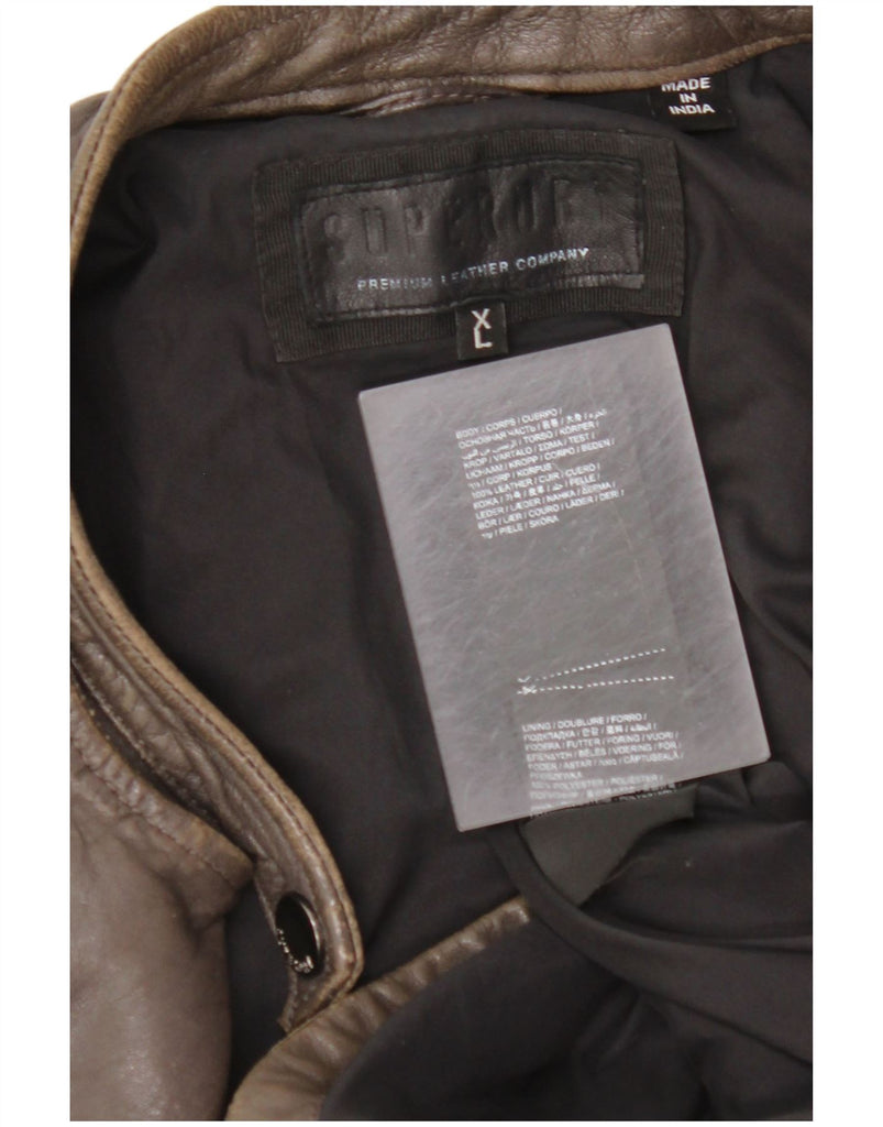 Jaqueta feminina de couro SUPERDRY para motociclista UK 18 XL couro marrom