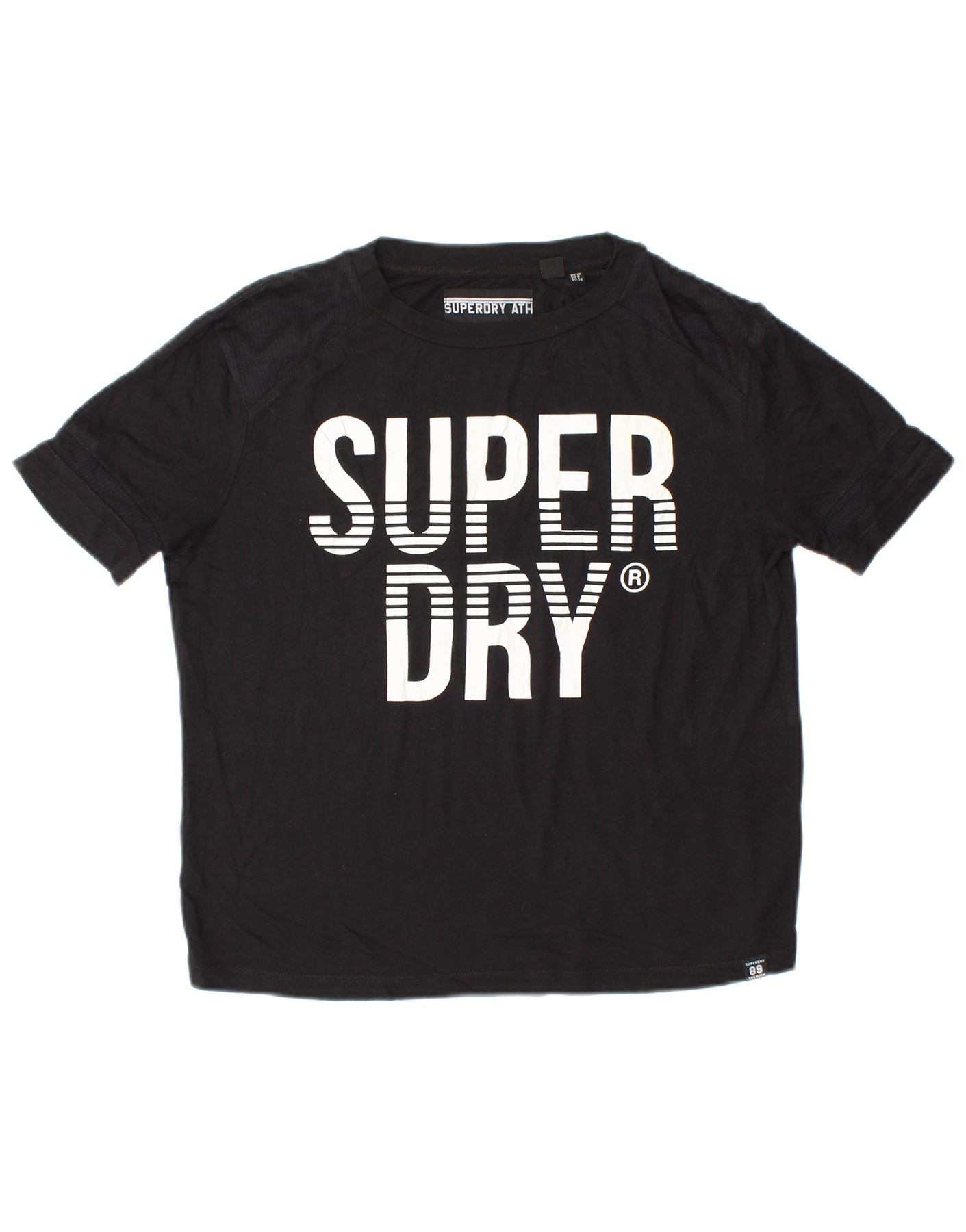 Camiseta feminina SUPERDRY com corte solto e estampa gráfica UK 10 pequena preta