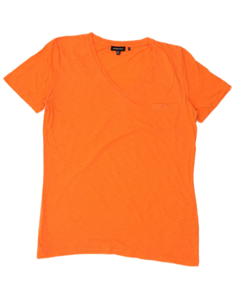 Camiseta feminina SUPERDRY folgada, Reino Unido 10 algodão laranja pequeno