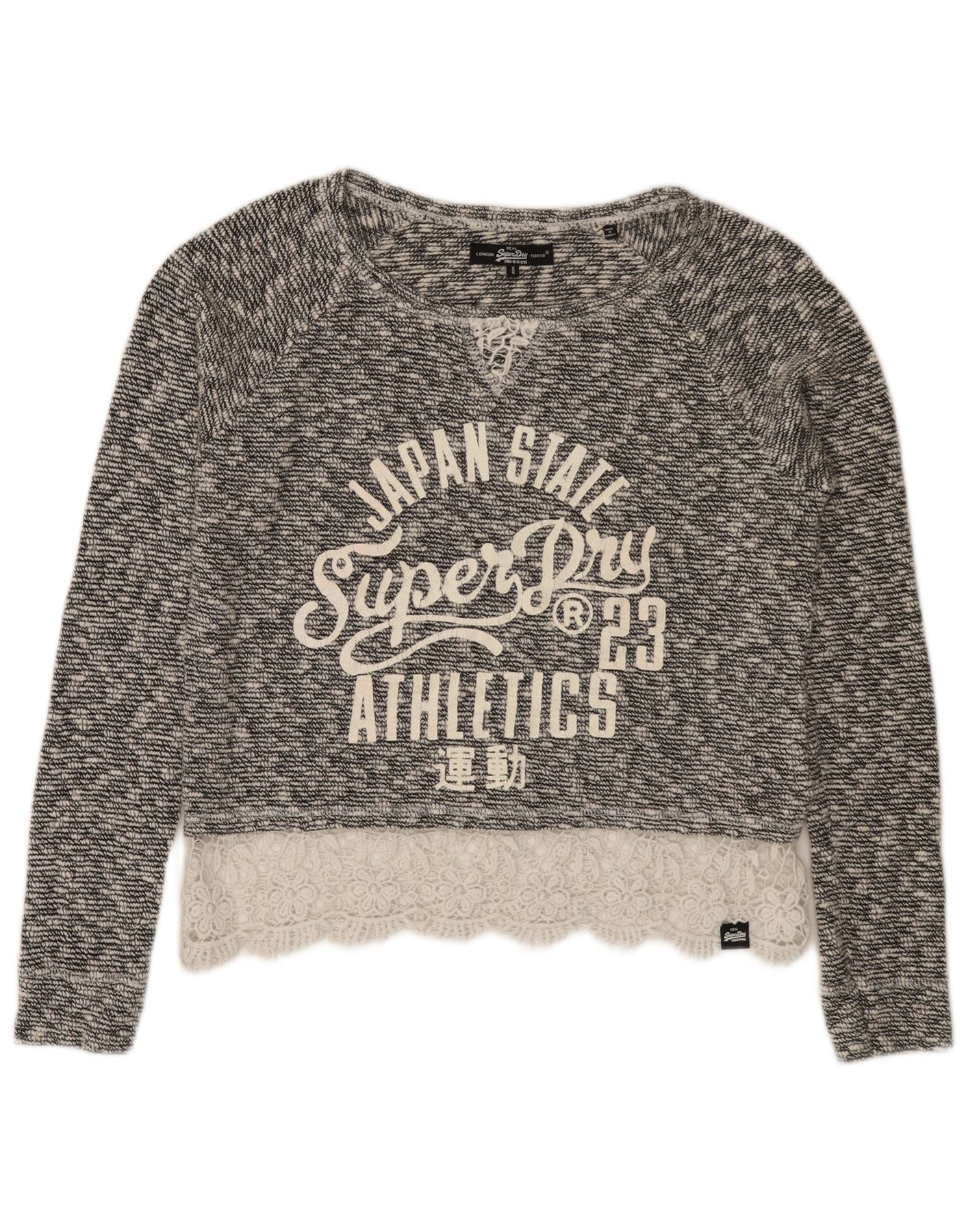 Superdry Suéter feminino superdimensionado com gola canoa e gola redonda Reino Unido 6 XS algodão cinza