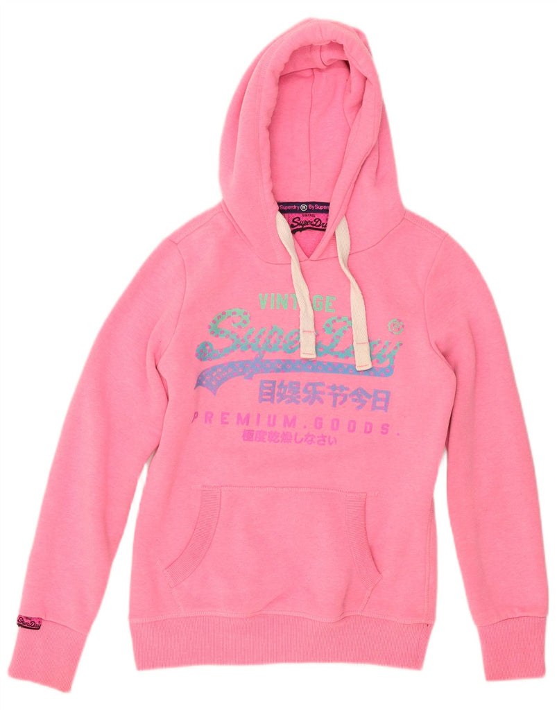SUPERDRY Womens Oversized Graphic Hoodie Jumper UK 6 XS Pink Polyester