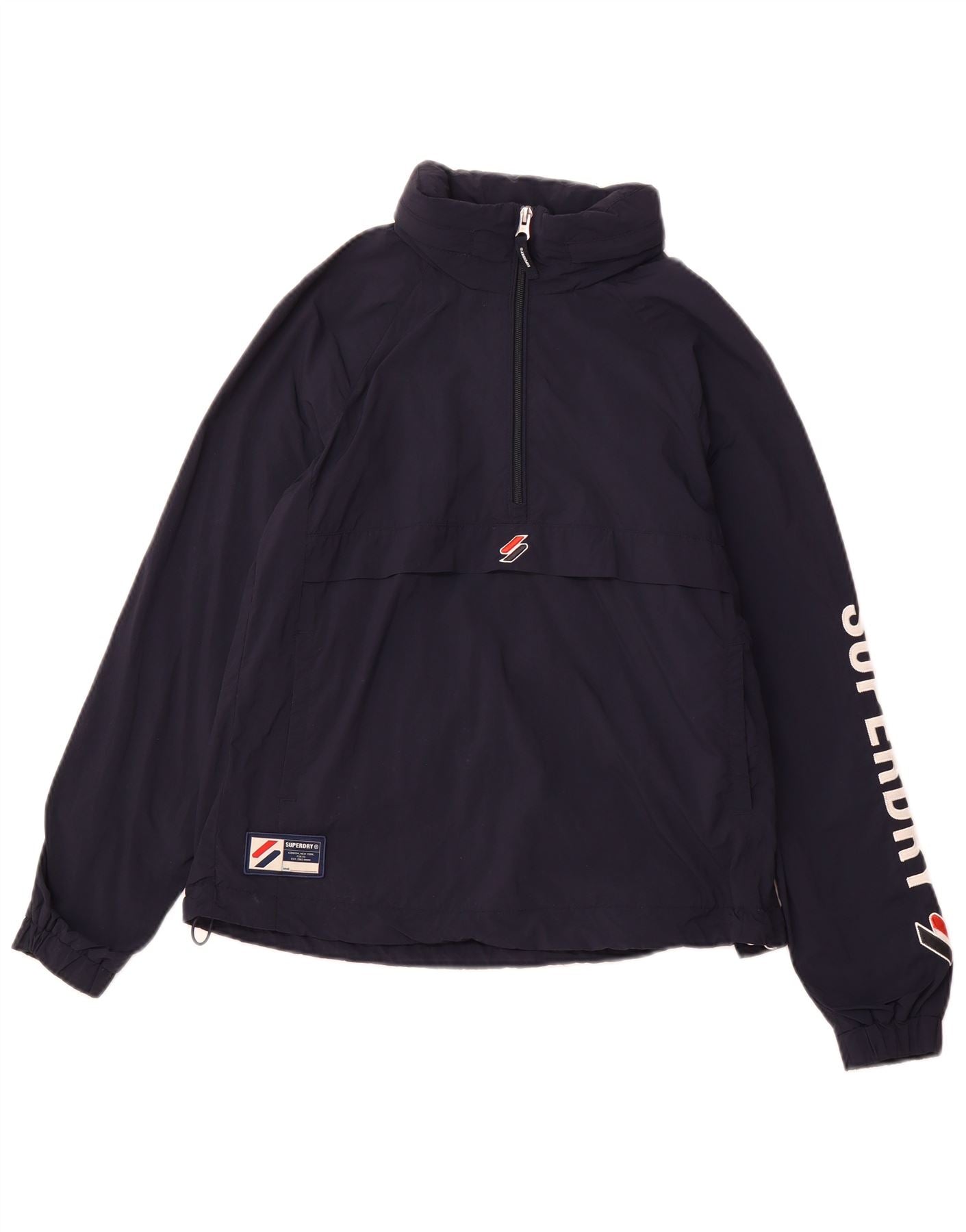 SUPERDRY Womens Oversized Hooded Anorak Jacket UK 8 Small Navy Blue
