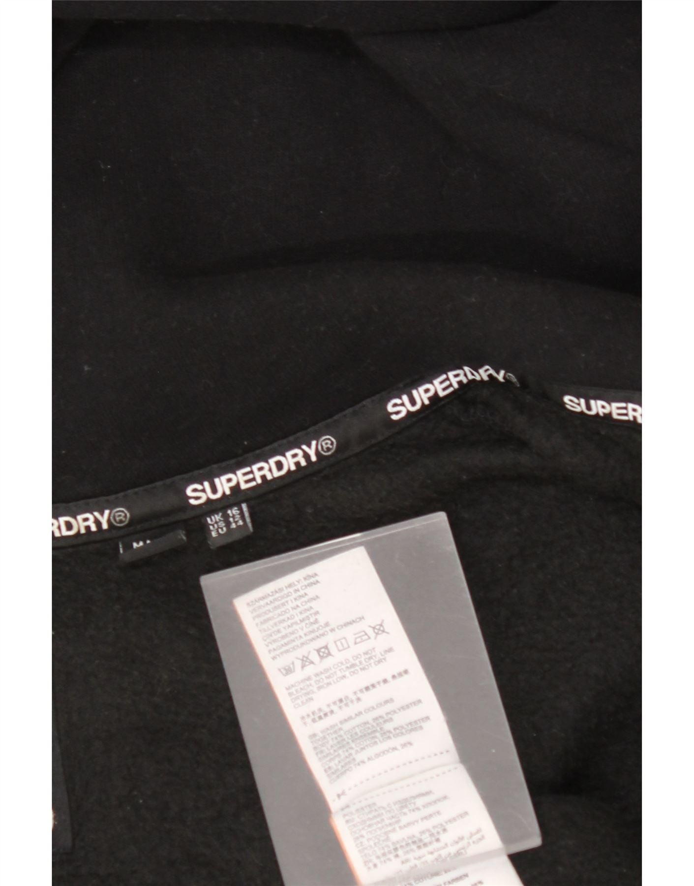 SUPERDRY Womens Oversized Zip Hoodie Sweater UK 16 Large Black Cotton