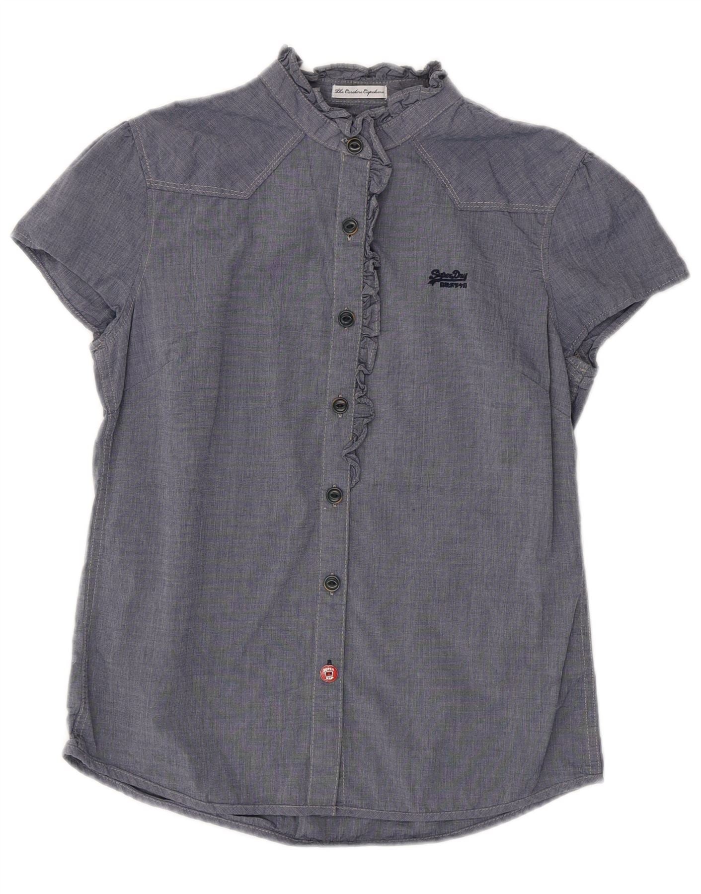 Blusa feminina SUPERDRY com babados na frente Reino Unido 12 médio azul marinho