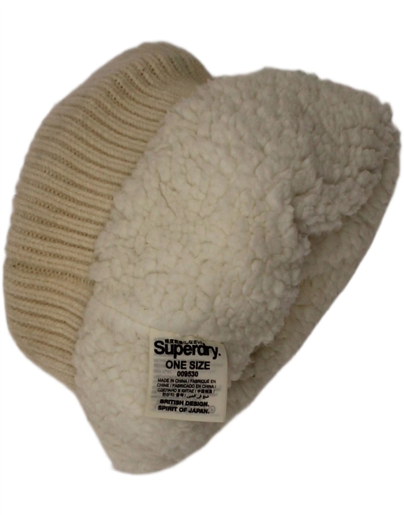 SUPERDRY Womens Sherpa Knit Beanie Cap One Size Off White Acrylic Winter