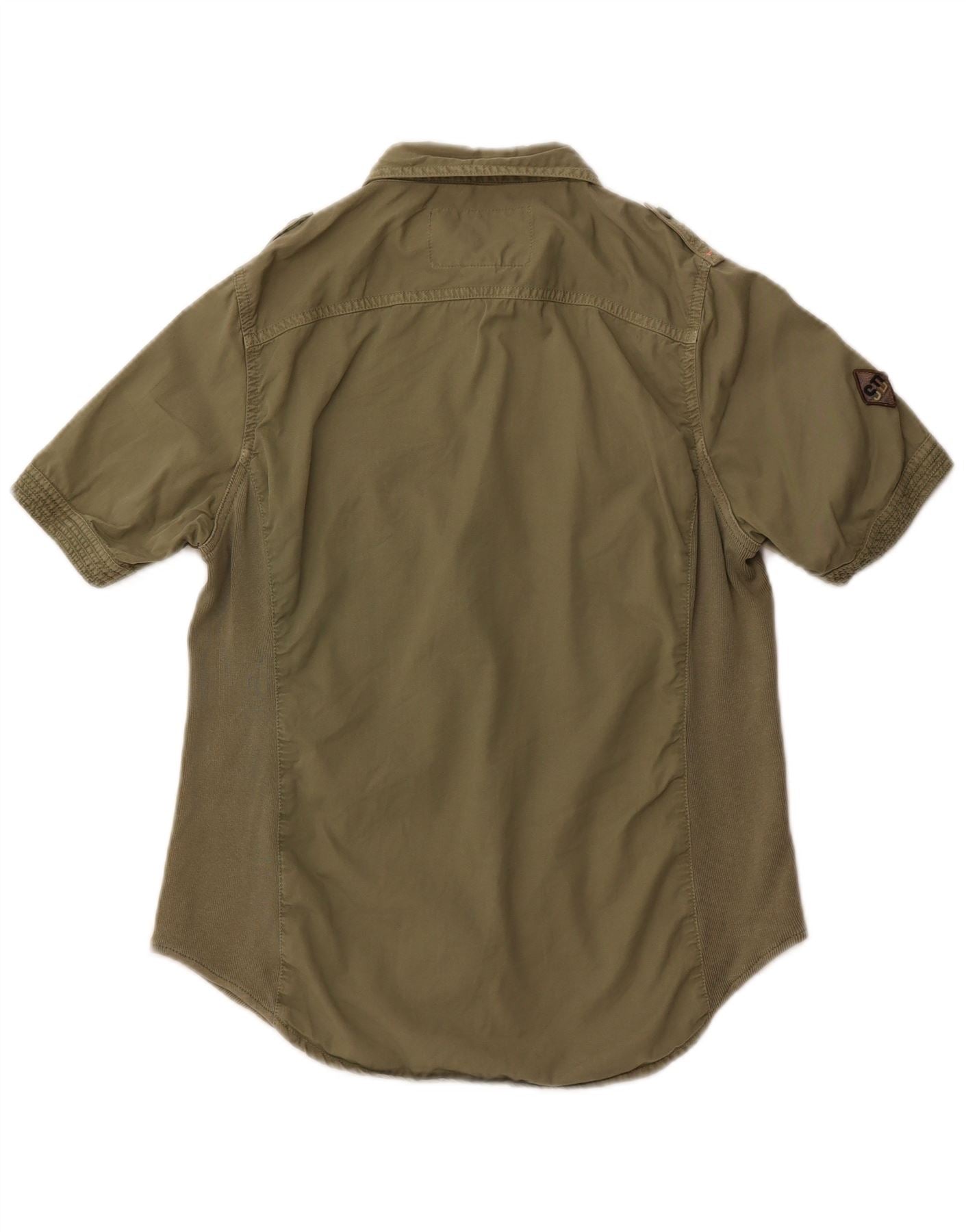 Camisa militar feminina de manga curta SUPERDRY Reino Unido 14 grande algodão cáqui