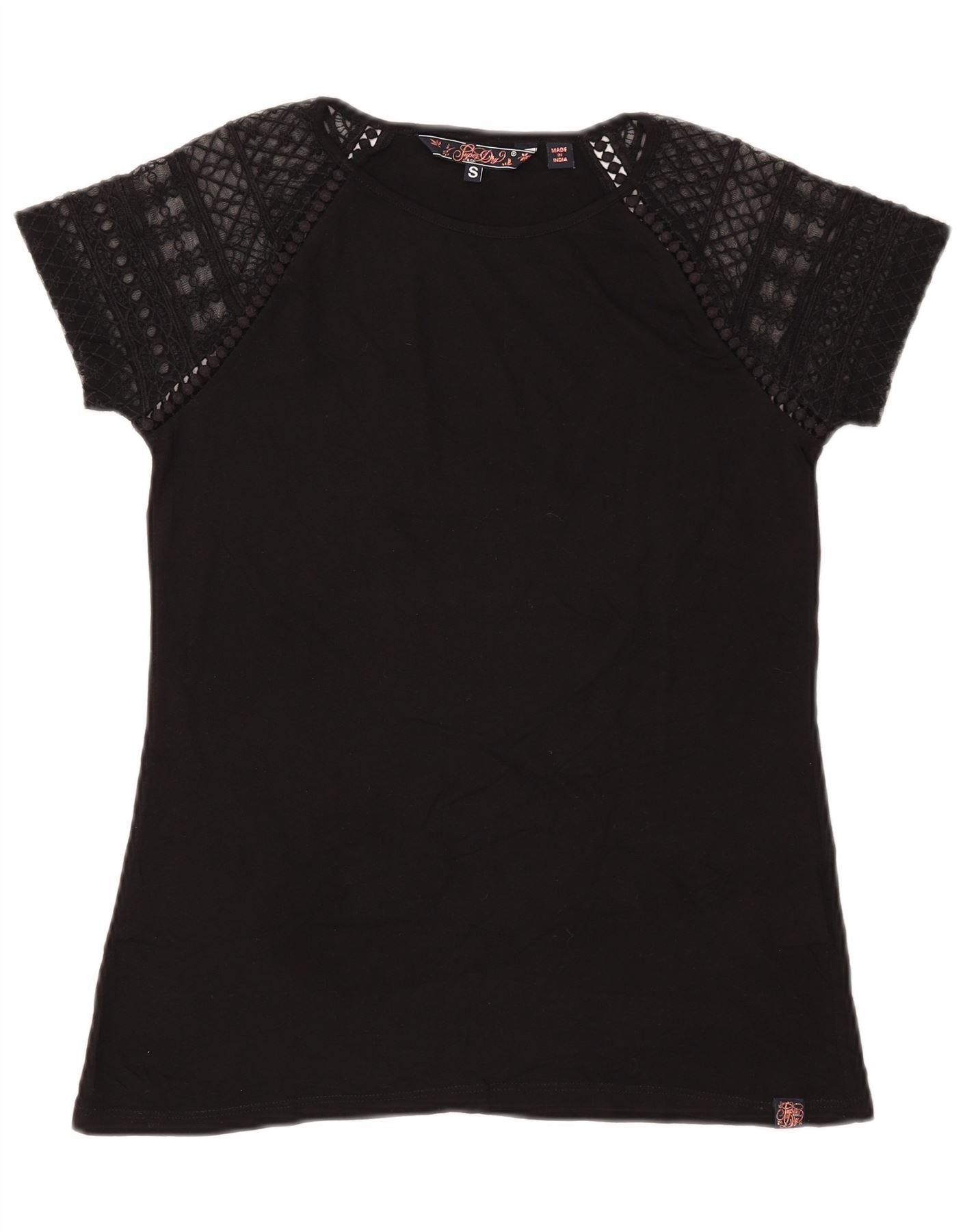Camiseta feminina SUPERDRY UK 10 pequeno algodão preto
