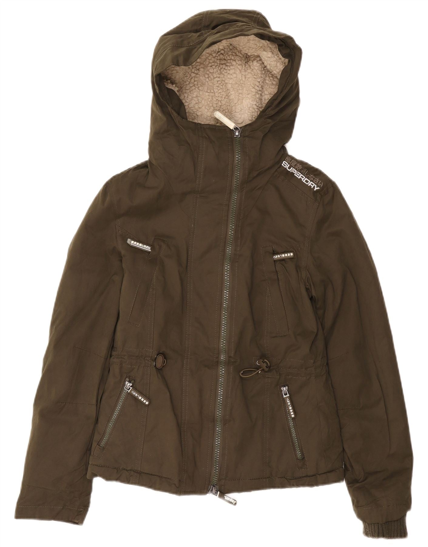 Superdry Womens The windparka Hooded Utility Jacket UK 6 XS Verde Poliéster