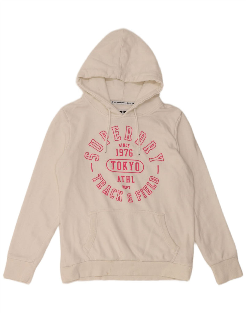 Suéter feminino SUPERDRY com capuz gráfico de atletismo UK 14 grande off white