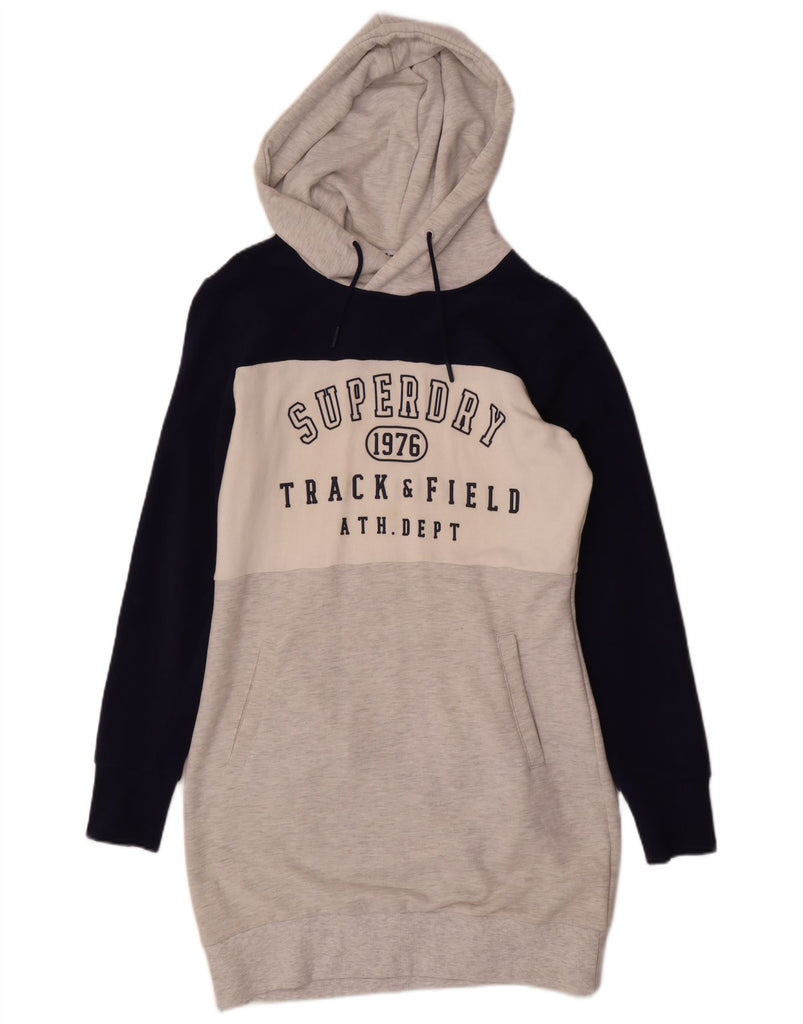 SUPERDRY Womens Track & Field Long Sleeve Hoodie Dress UK 12 Medium Grey