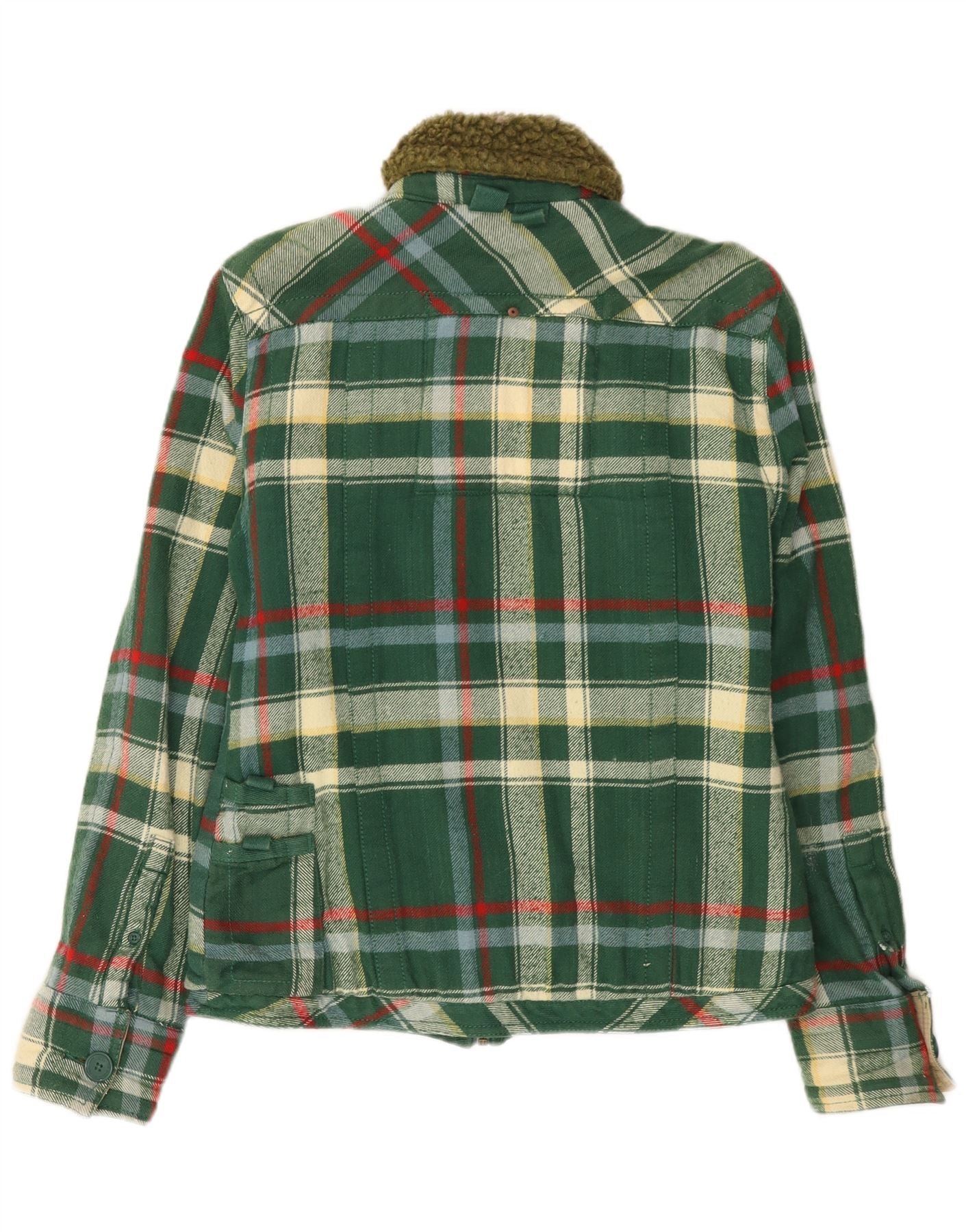 Jaqueta utilitária feminina SUPERDRY UK 12 algodão xadrez verde médio