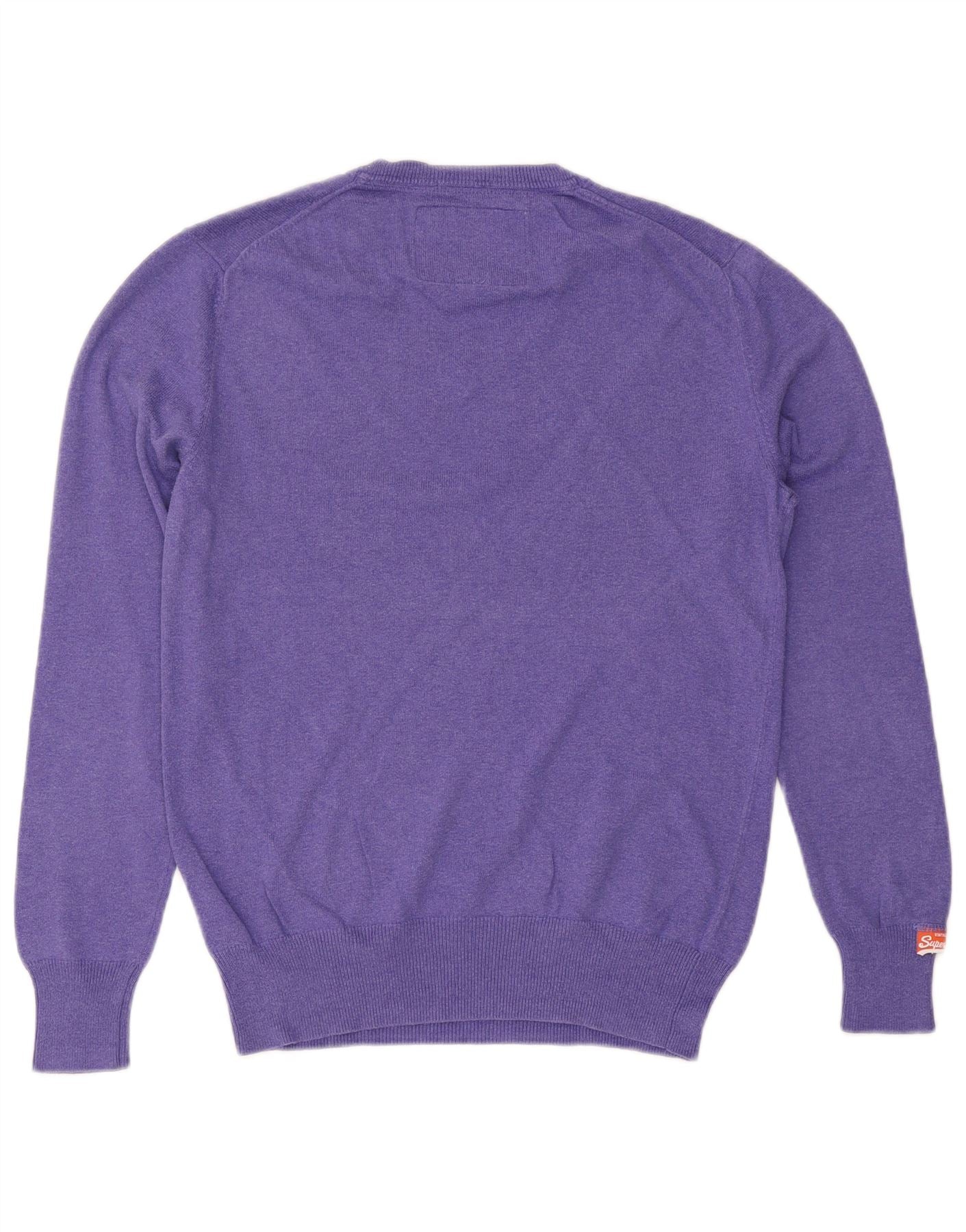 Suéter feminino SUPERDRY com decote em V Reino Unido 14 algodão roxo médio