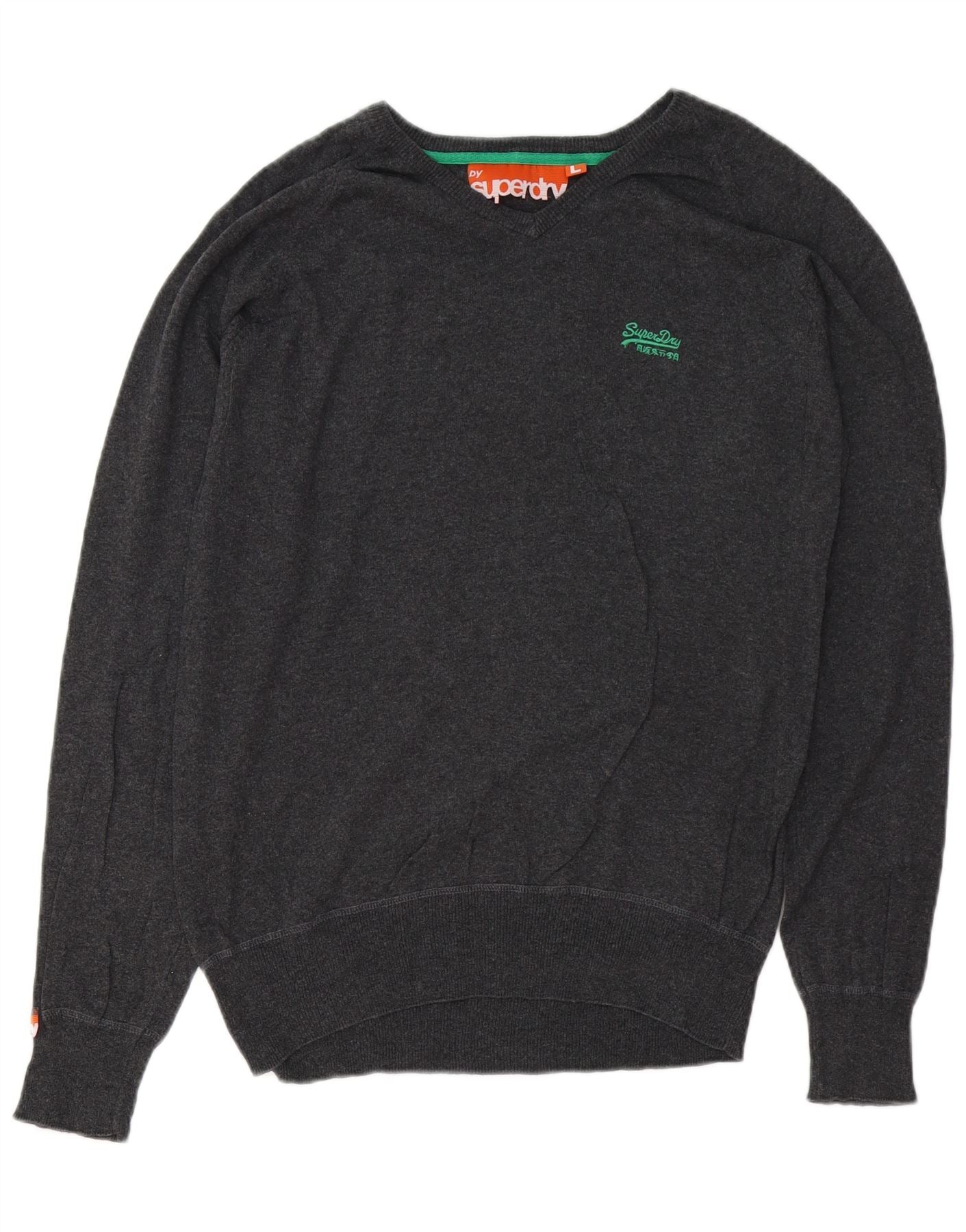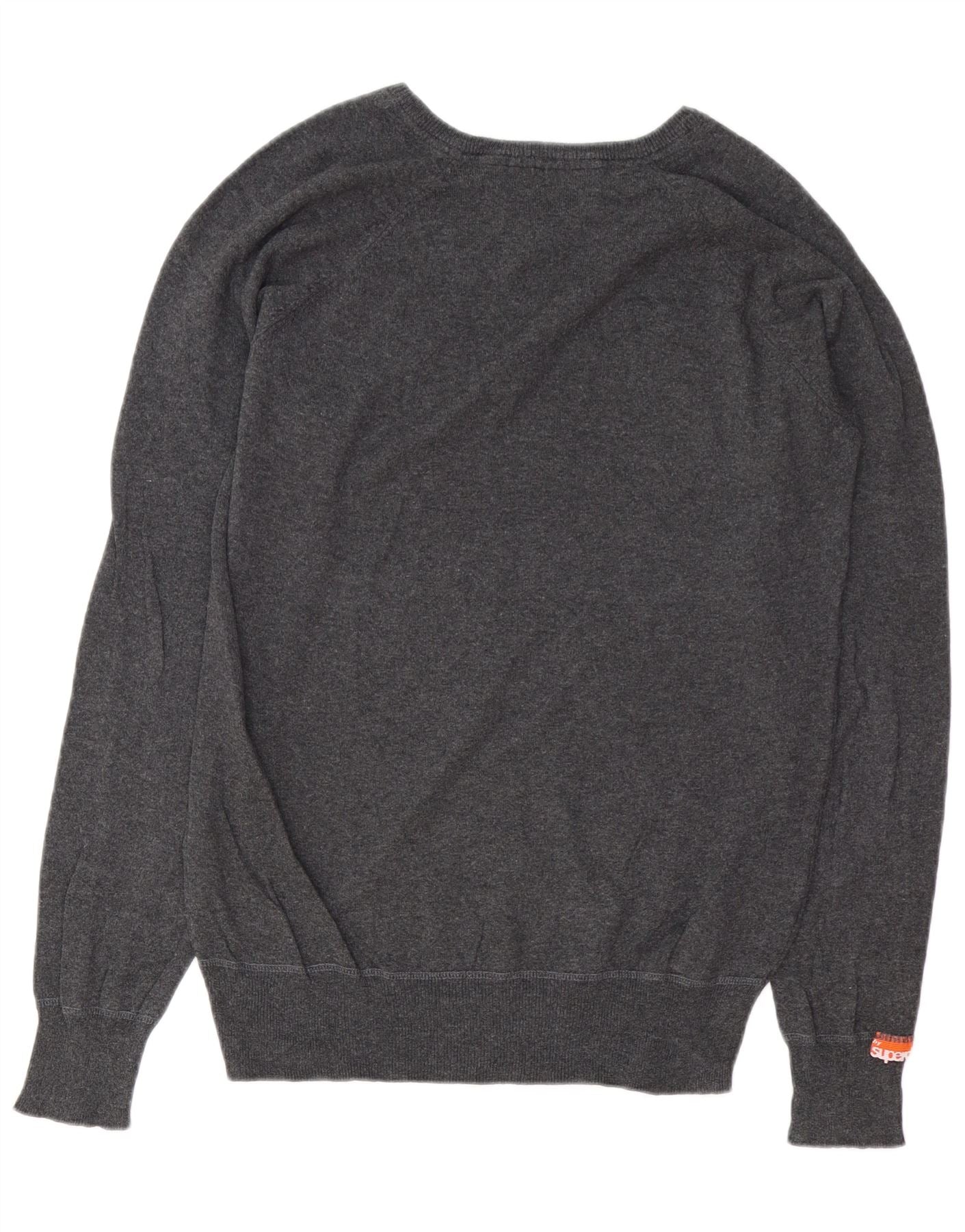 Suéter feminino SUPERDRY com decote em V Reino Unido 16 grande algodão cinza