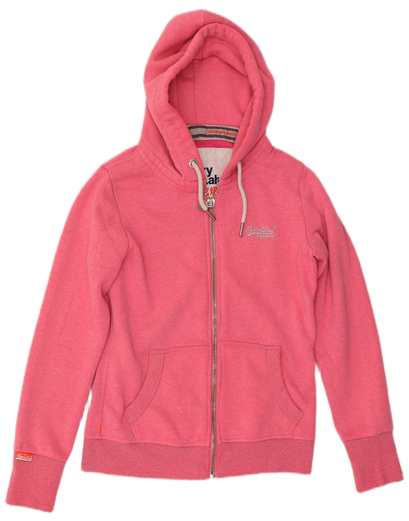 SUPERDRY Womens Zip Hoodie Sweater UK 12 Medium Pink Flecked Polyester
