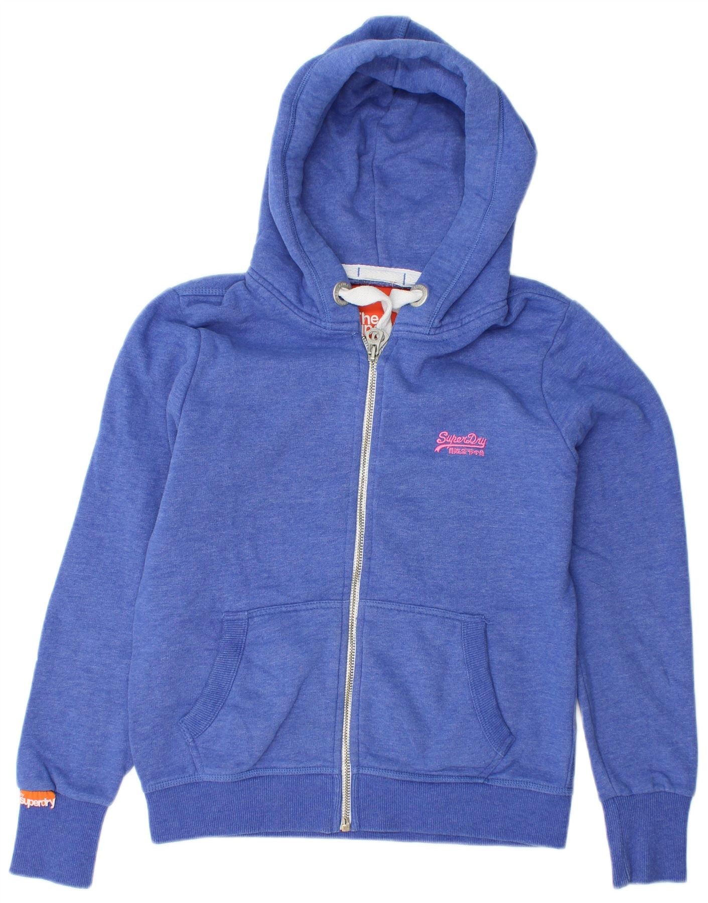 Suéter feminino com capuz e zíper SUPERDRY Reino Unido 16 grande algodão azul