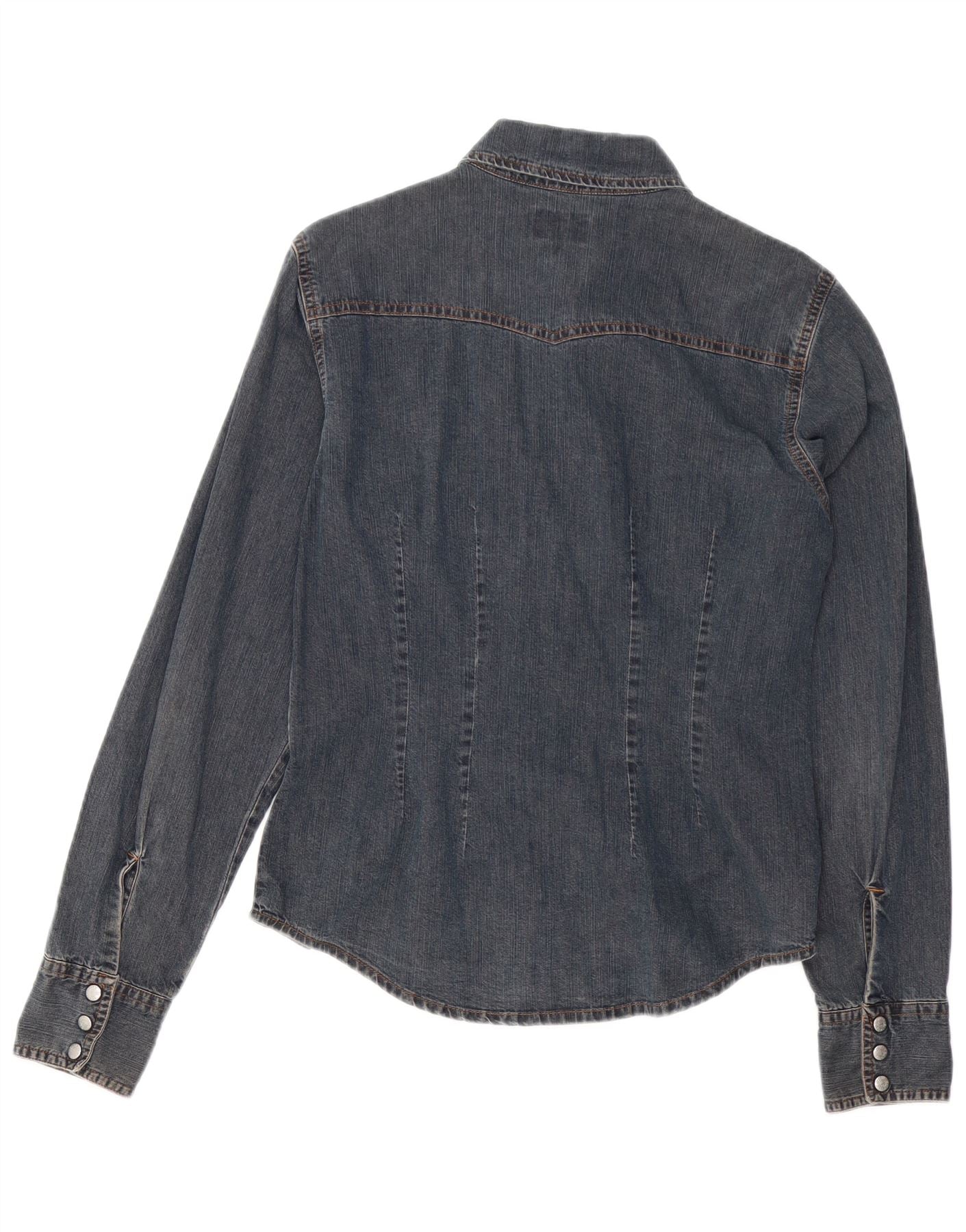 Camisa jeans feminina SWISH Reino Unido 14 grande algodão azul marinho
