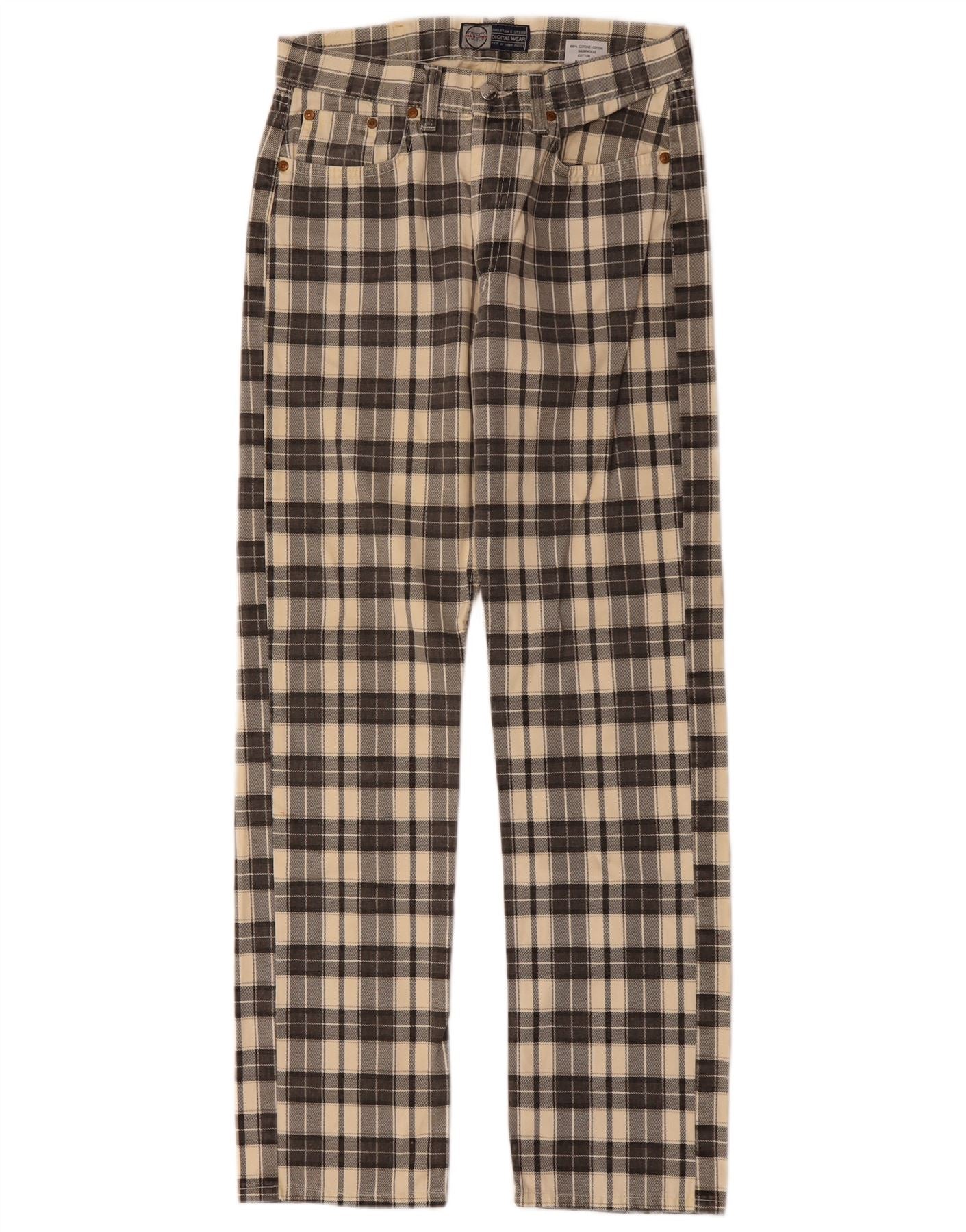 Calça masculina reta casual Take Two W31 L32 algodão xadrez bege