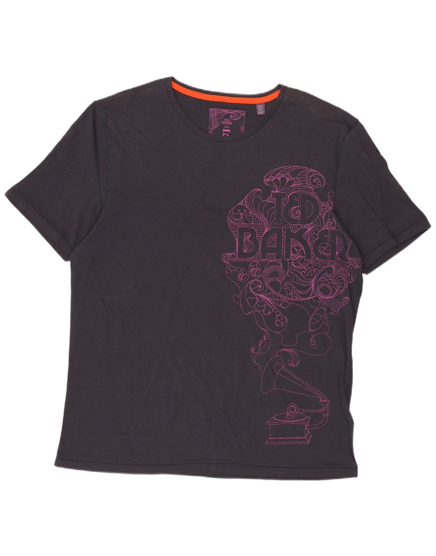 Camiseta gráfica masculina Ted Baker tamanho superior 5 XL azul marinho algodão