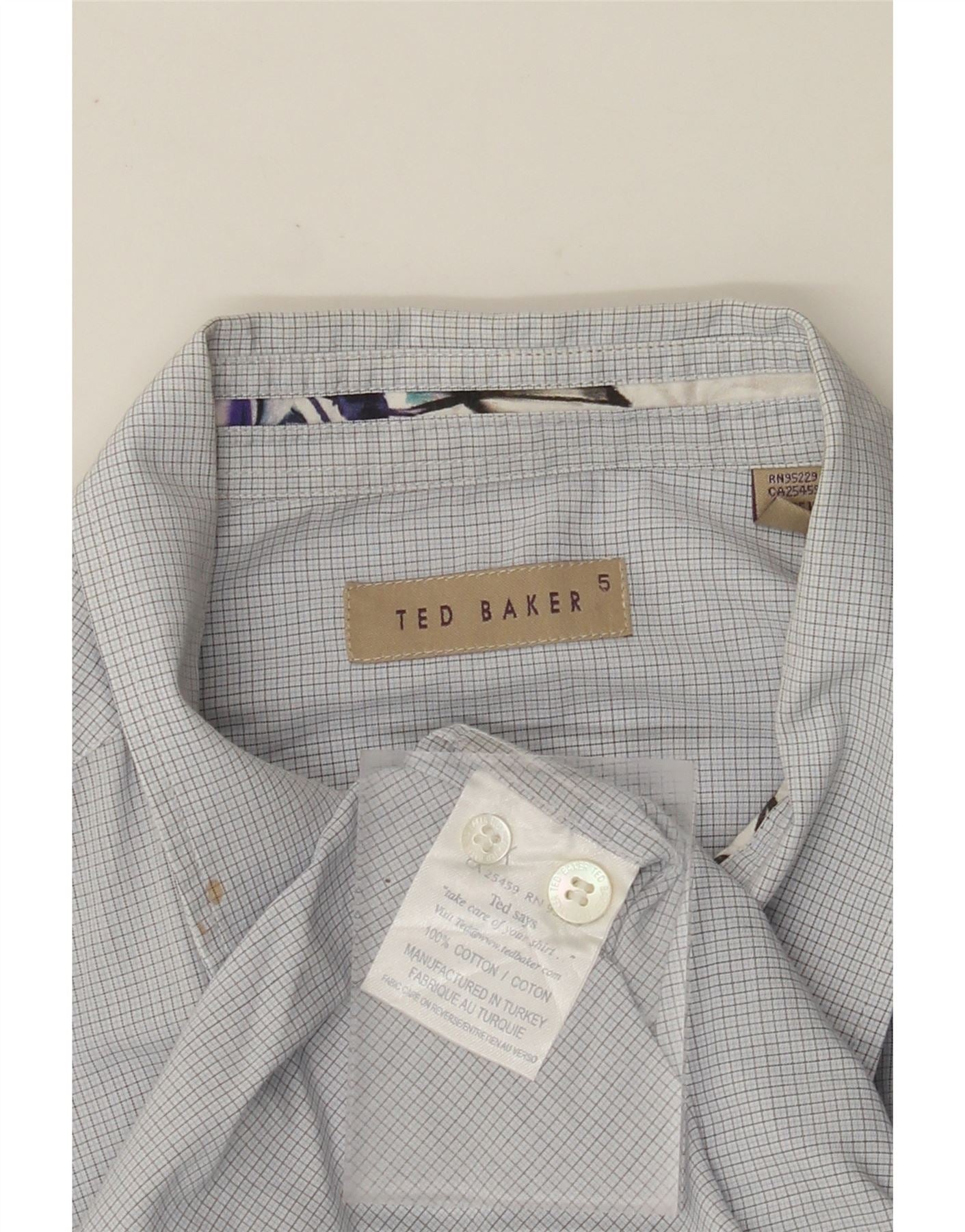 Camisa masculina TED BAKER tamanho 5 XL algodão guingão azul