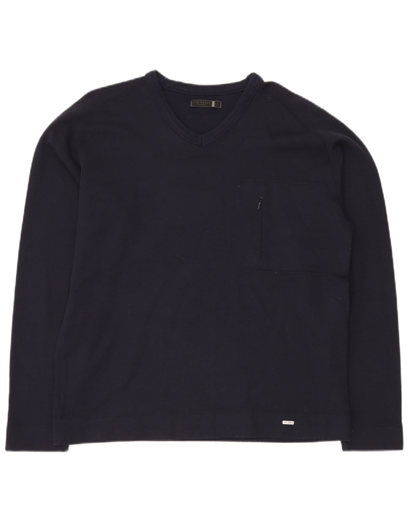 Suéter masculino TED BAKER com decote em V tamanho 5 XL azul marinho algodão