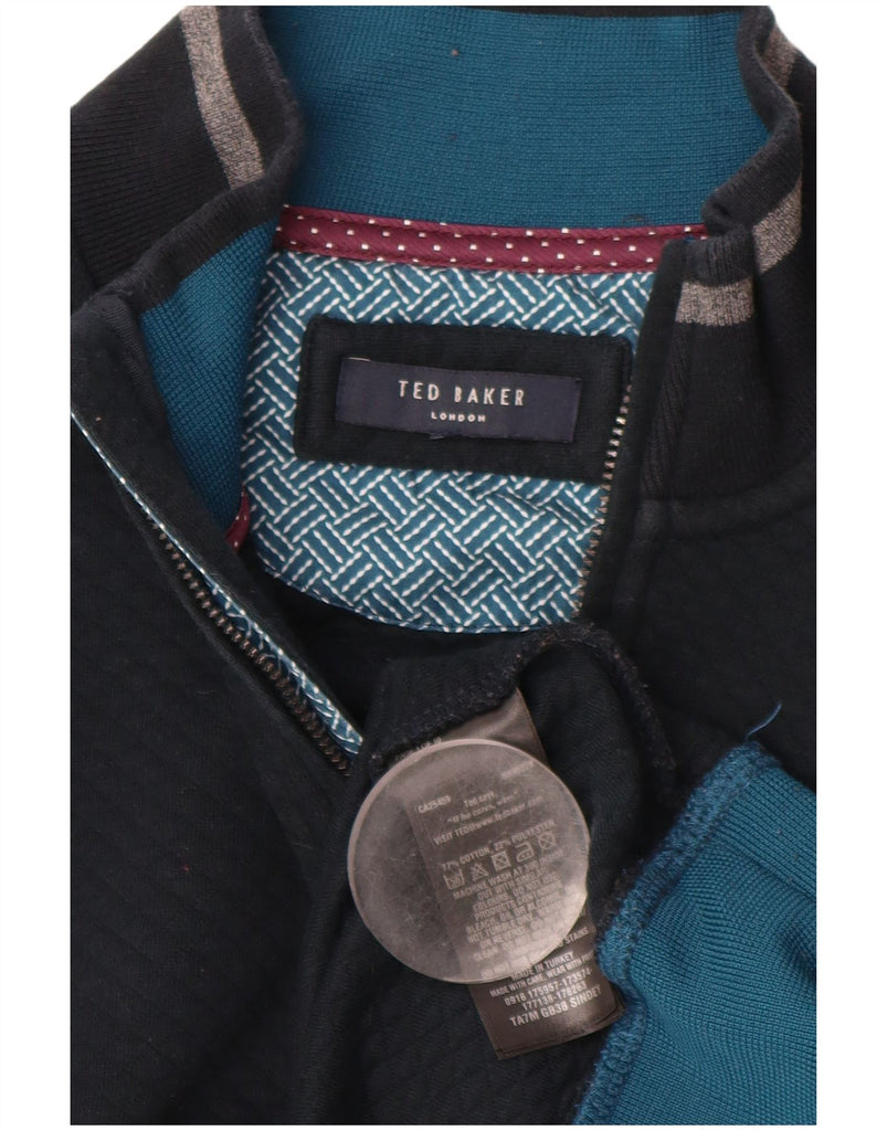 TED BAKER Mens Zip Neck Sweatshirt Jumper Medium Navy Blue Cotton