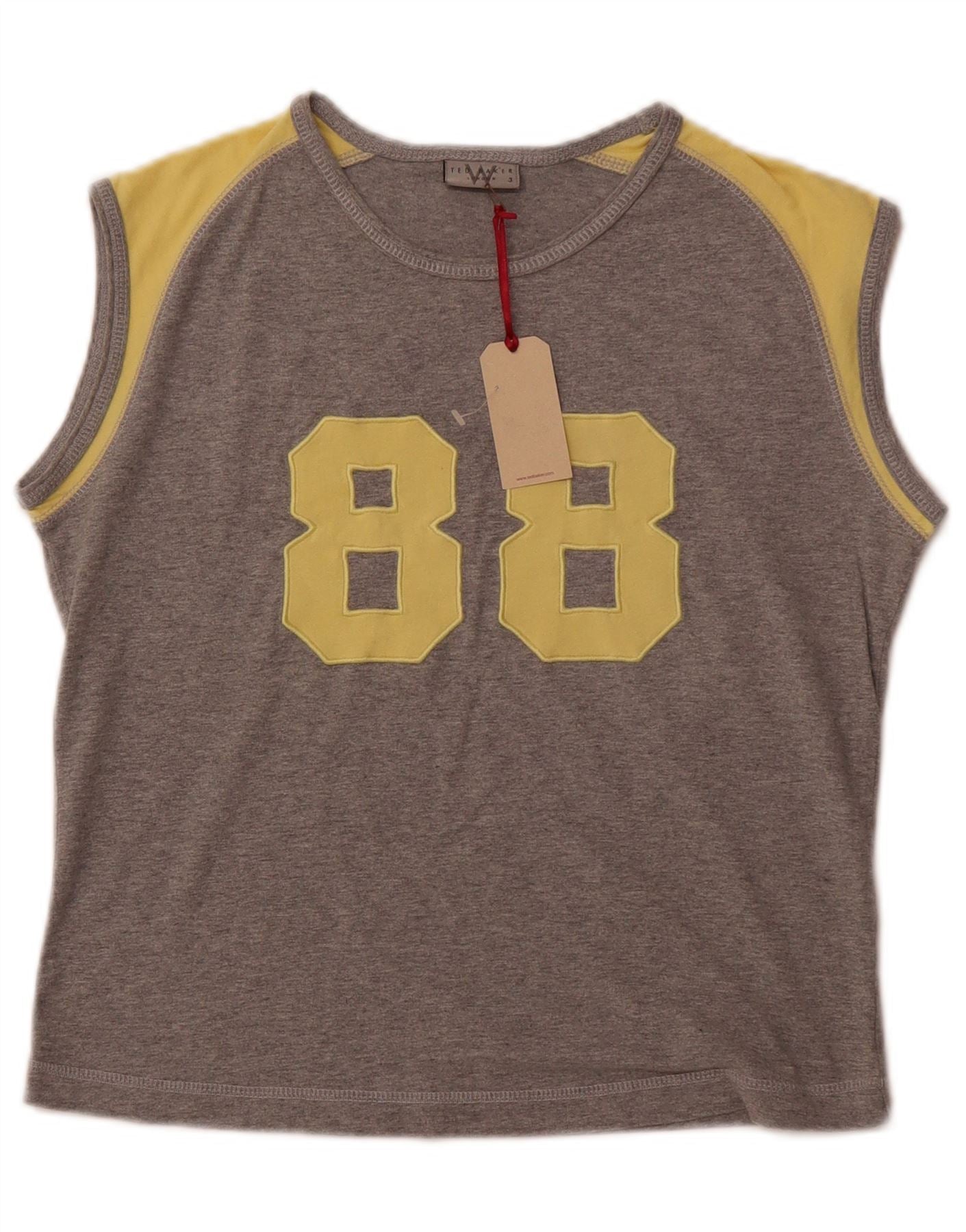 TED BAKER Womens Crop Graphic Vest Top Size 3 Medium Grey Colourblock