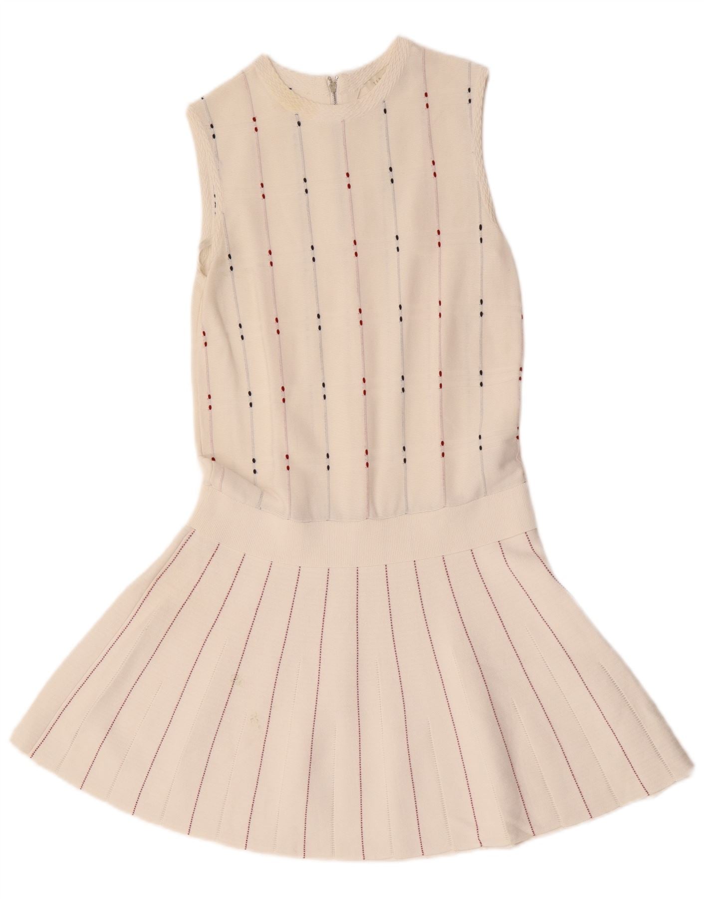 Vestido feminino Ted Baker sem mangas com cintura baixa tamanho 1 XS listrado branco