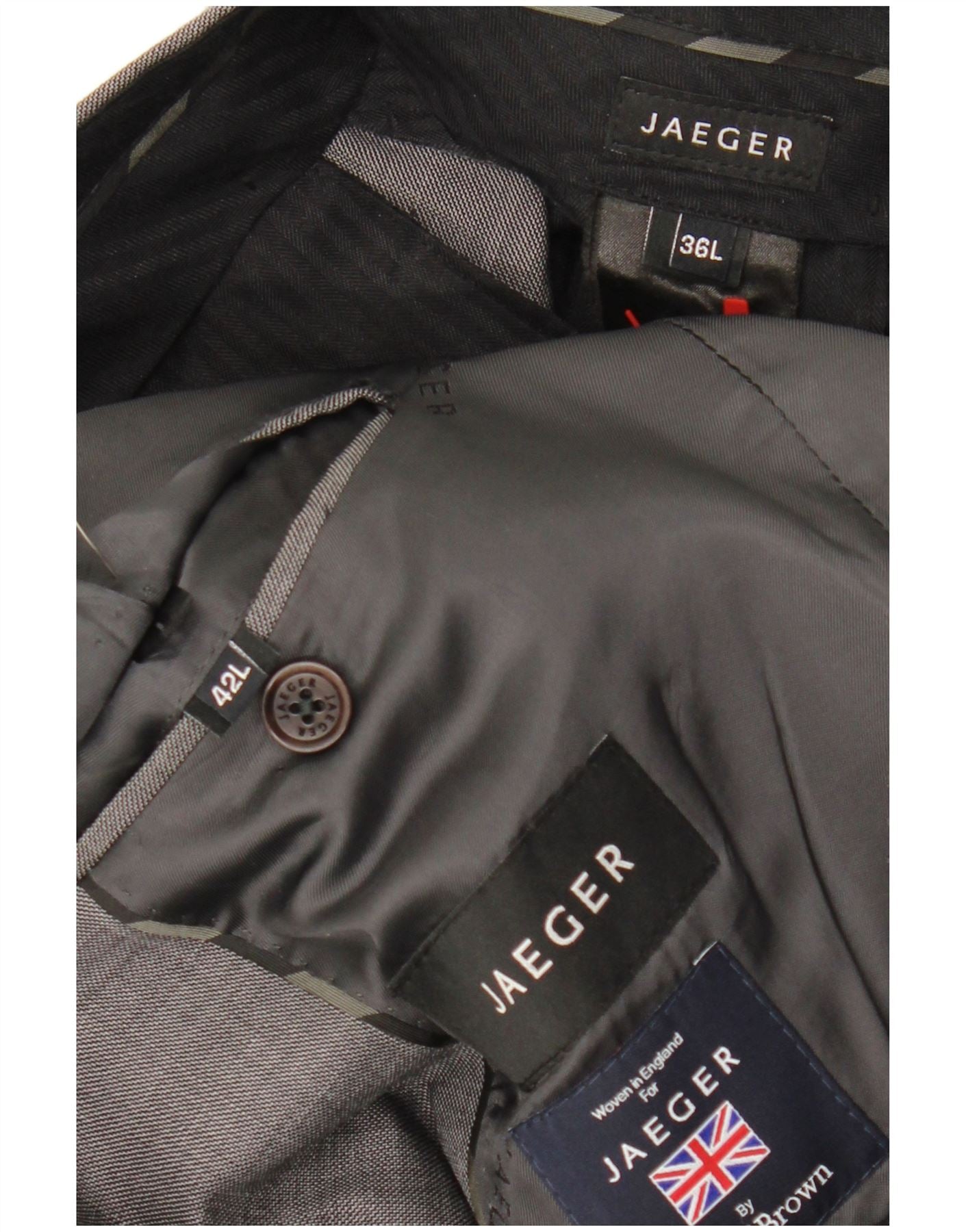 Terno masculino JAEGER com 2 botões e 2 peças Reino Unido 40 grande W36 L34 cinza