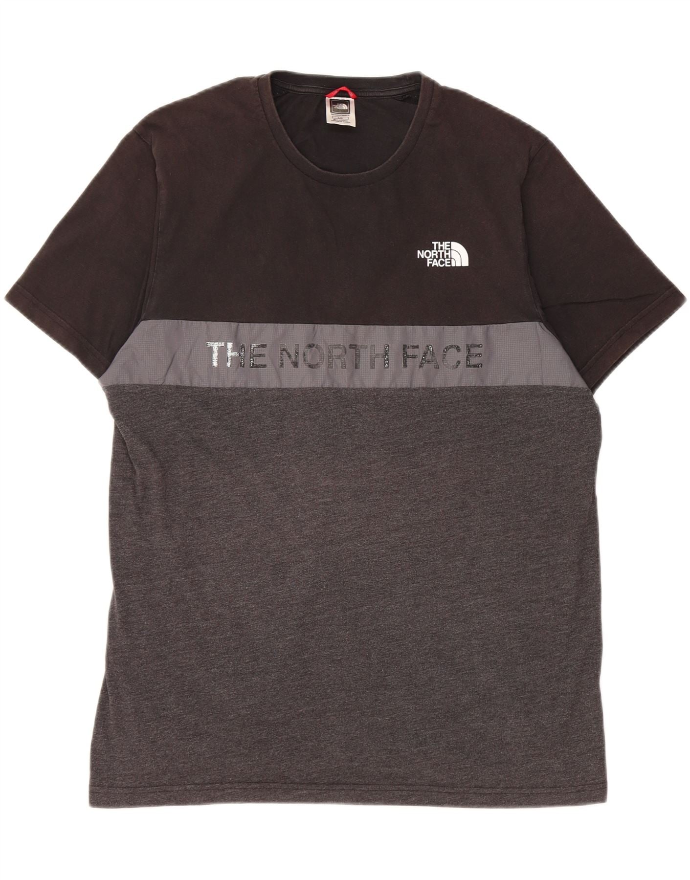 THE NORTH FACE Camiseta masculina Grant Fit com estampa gráfica grande bloco colorido cinza