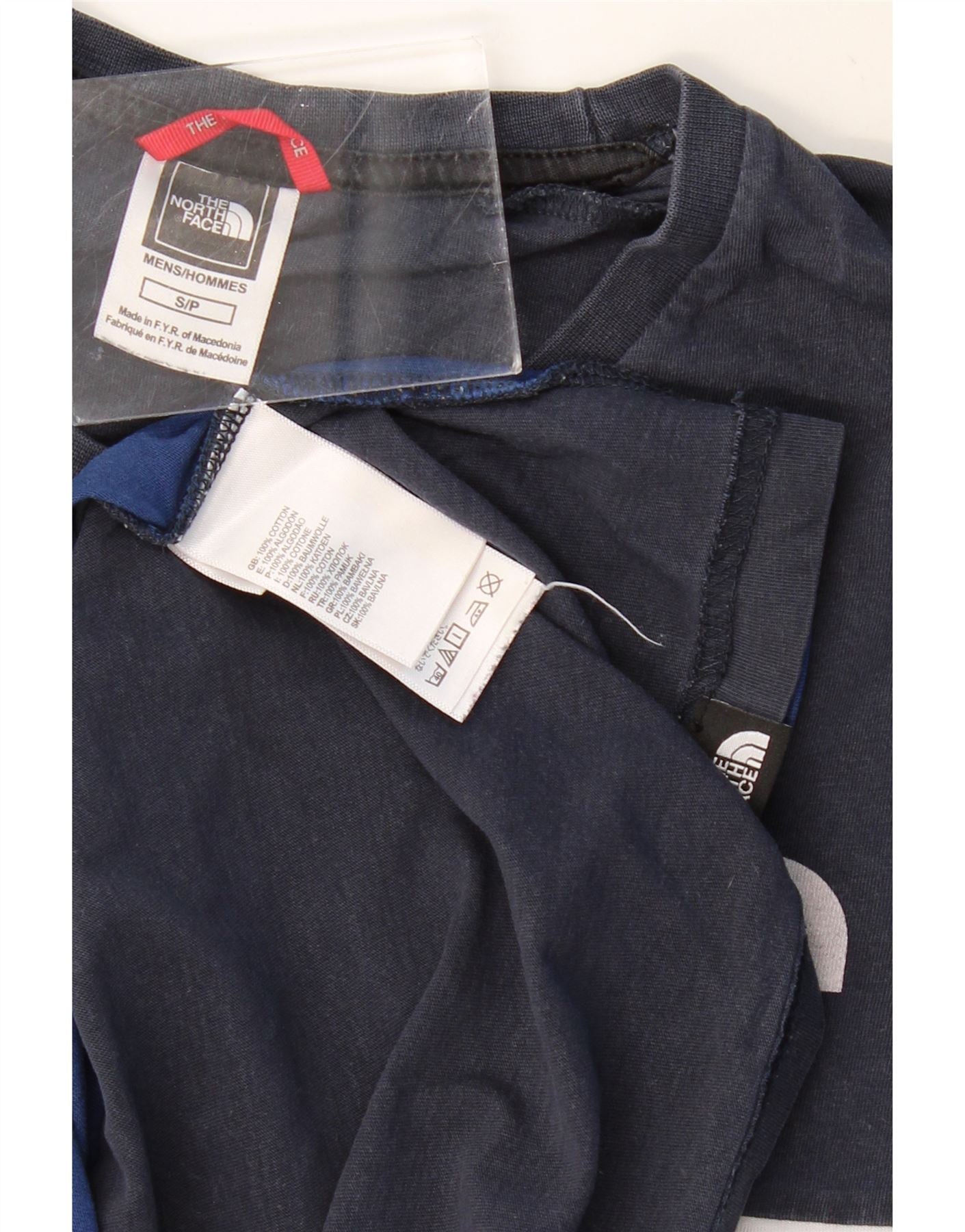 Camiseta gráfica masculina THE NORTH FACE top pequeno azul colorblock algodão