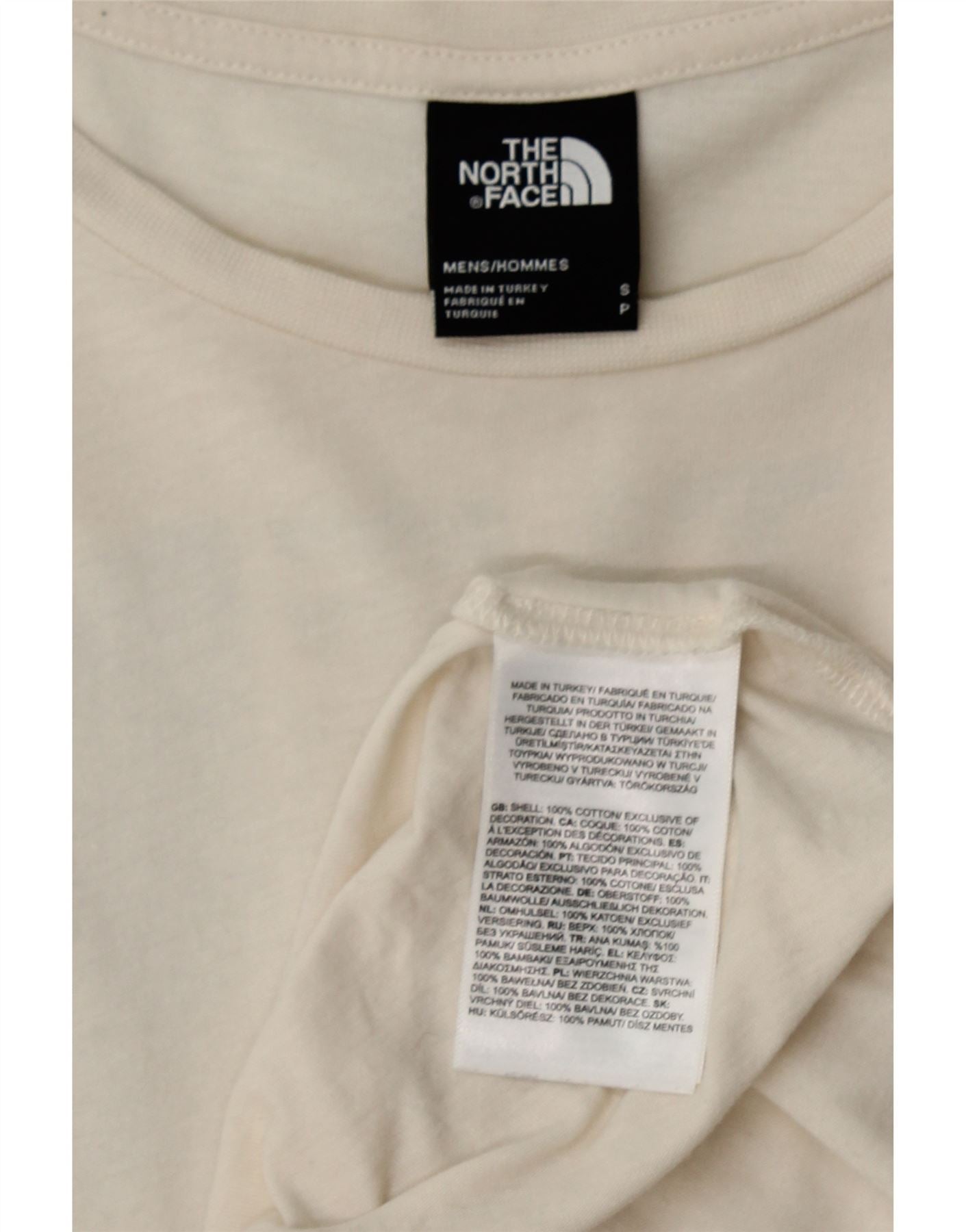 THE NORTH FACE Mens Graphic T-Shirt Top Small Off White Cotton