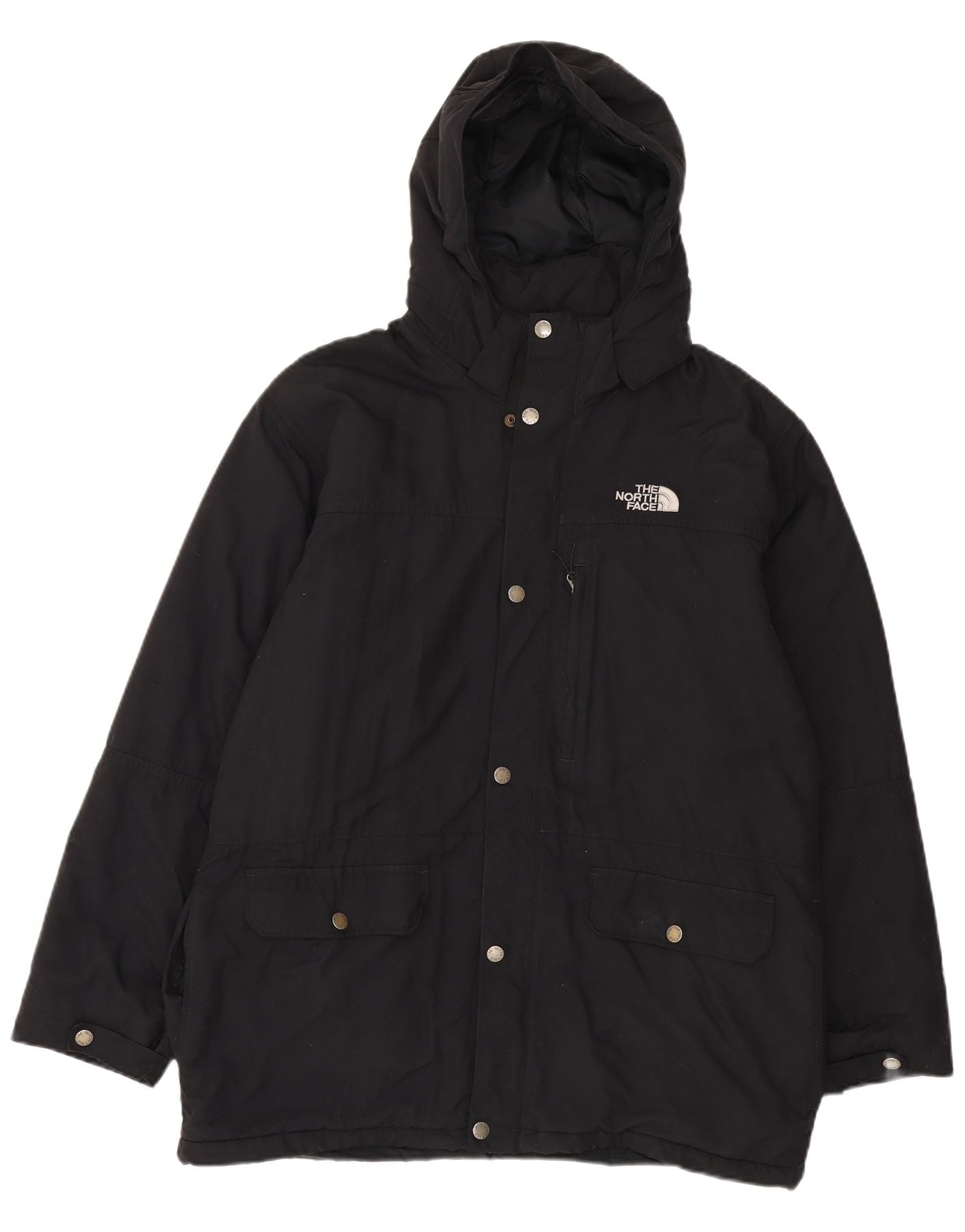 - Descrição da IA: Esta jaqueta acolchoada masculina The North Face é confeccionada em tecido preto durável, oferecendo proteção resistente à água. Possui um design prático com capuz e fecho de correr completo, protegido por botões de pressão. Mangas compridas e decote com gola proporcionam ampla cobertura. O ajuste regular garante conforto, enquanto vários bolsos e um logotipo sutil acrescentam detalhes funcionais e de marca.