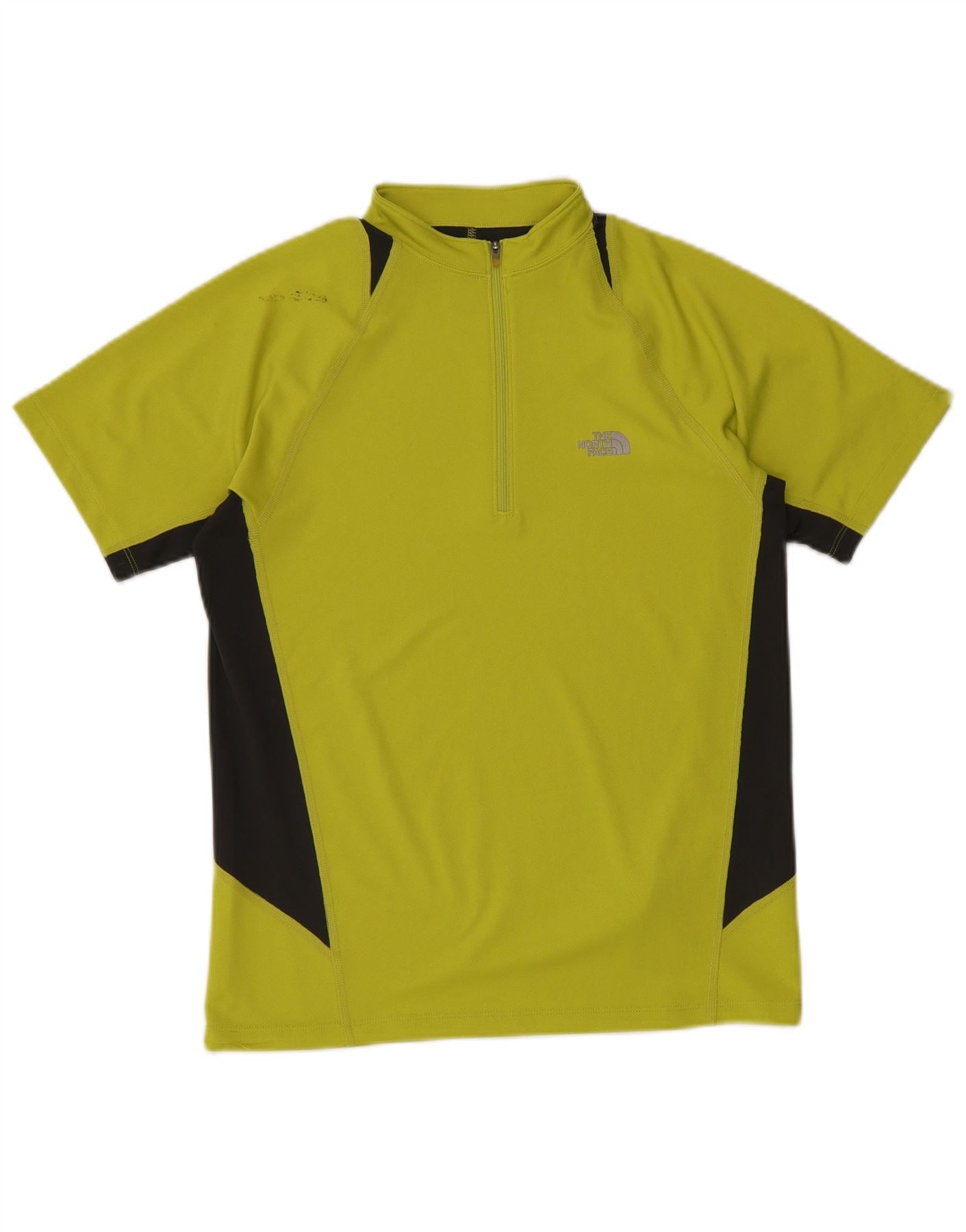 THE NORTH FACE Camiseta masculina com gola e zíper, top pequeno verde colorblock de poliéster