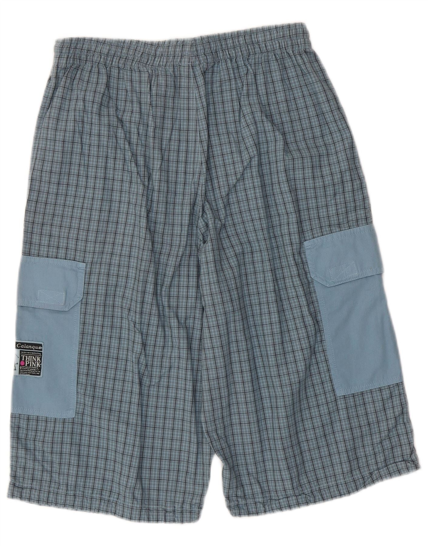 THINK PINK Shorts cargo masculino médio W30 algodão xadrez azul