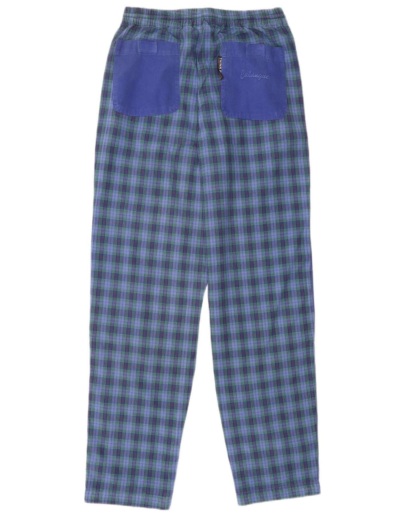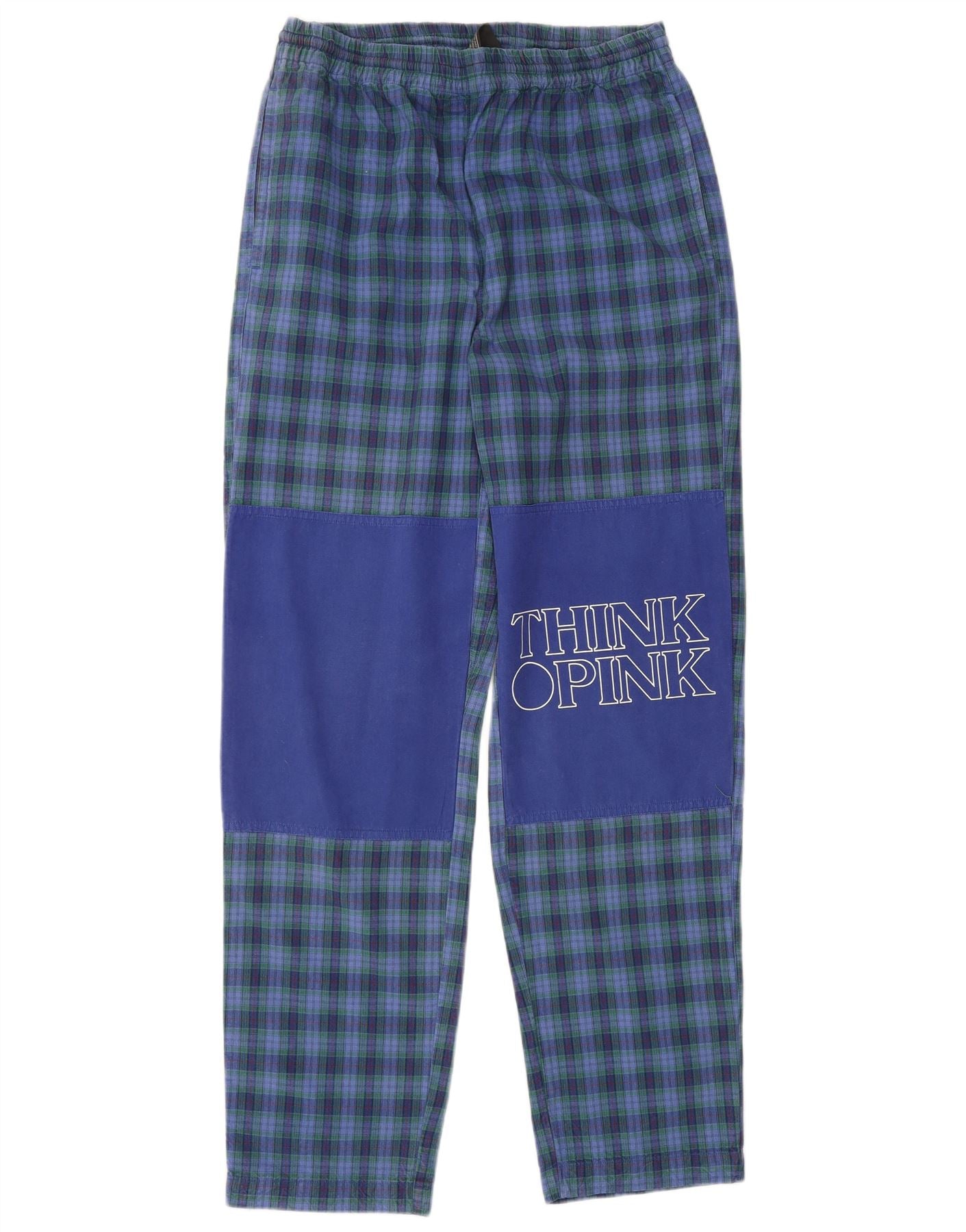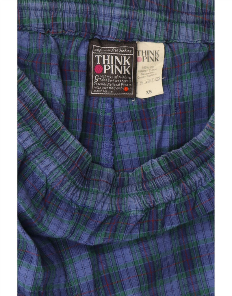 THINK PINK Mens Graphic Straight Casual Trousers XS W27 L30 Blue Check