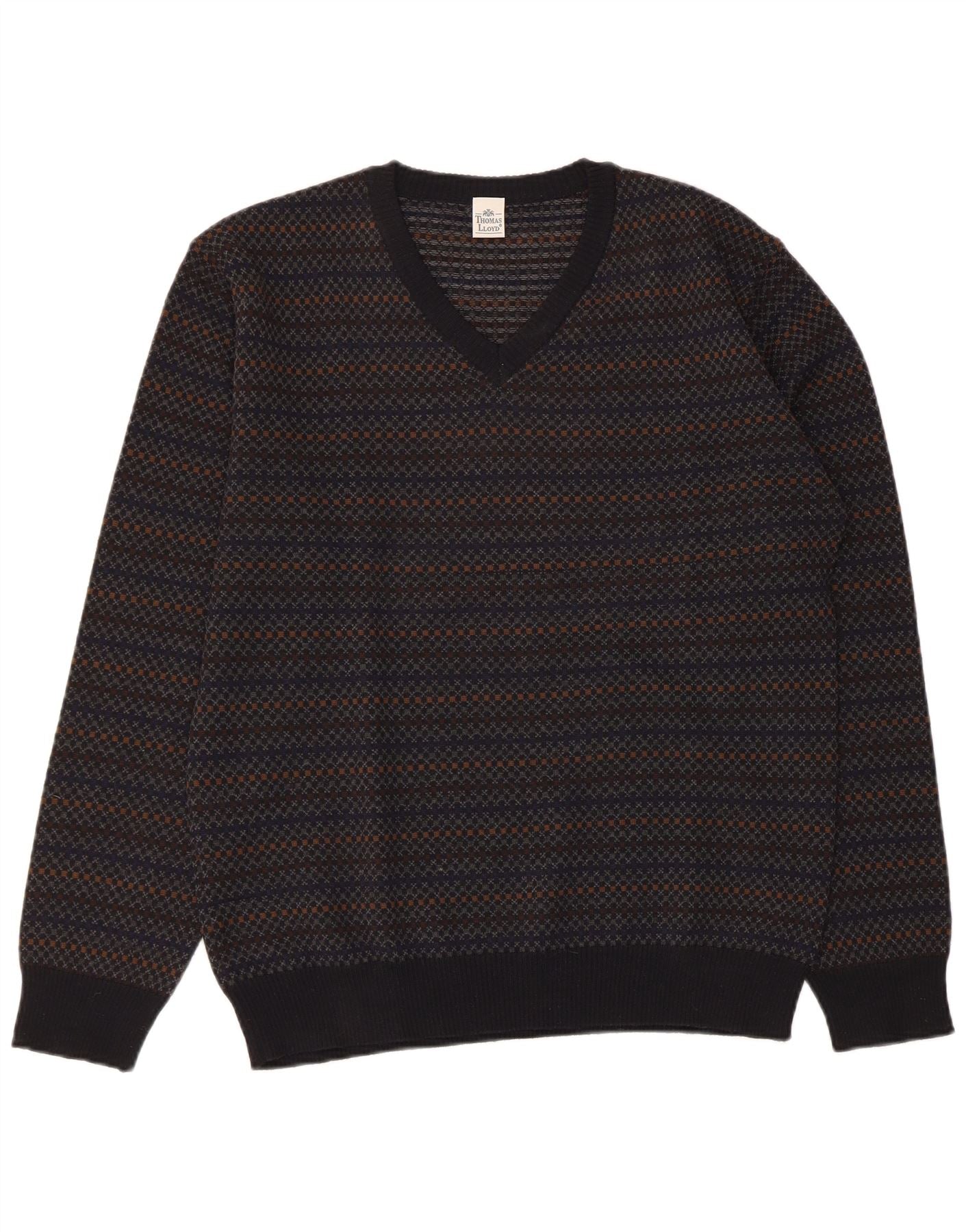 Suéter masculino THOMAS LLOYD com decote em V IT 48 listrado azul marinho médio