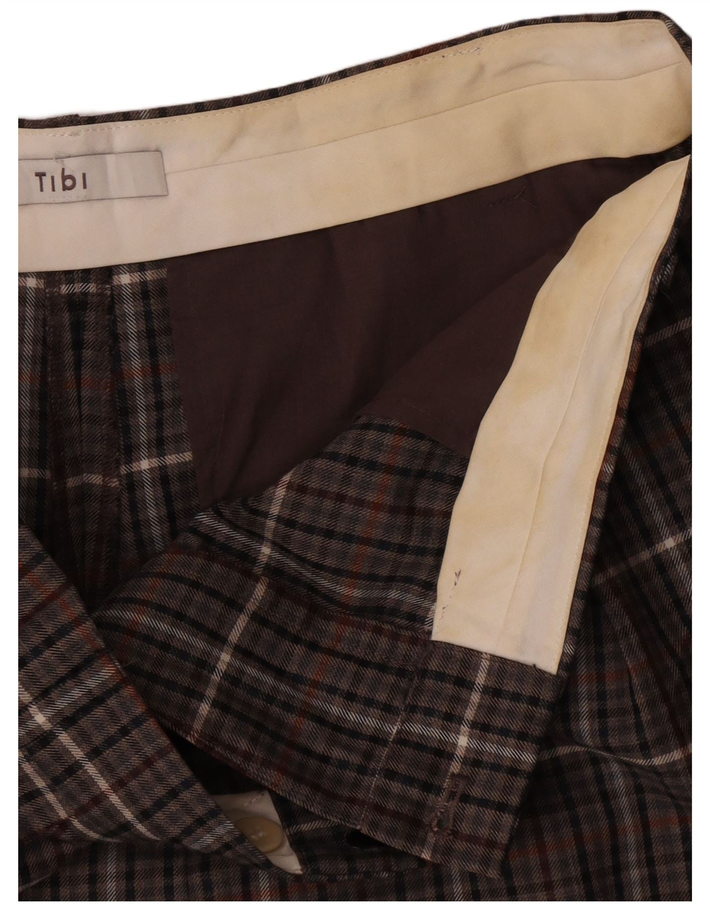 Shorts Chino feminino de cintura alta Tibi W32 poliéster xadrez marrom médio