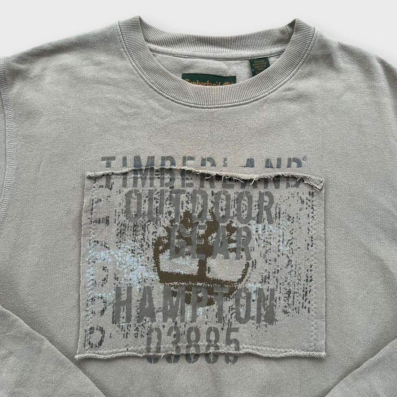 Moletom vintage com estampa gráfica Timberland do início dos anos 2000 em marrom com logotipo no braço