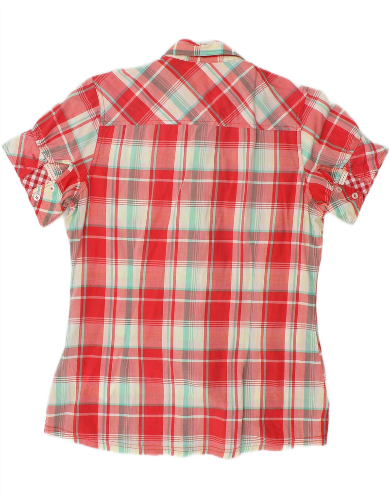 TIMBERLAND Womens Ruffle Front Short Sleeve Shirt UK 14 Medium Red Check