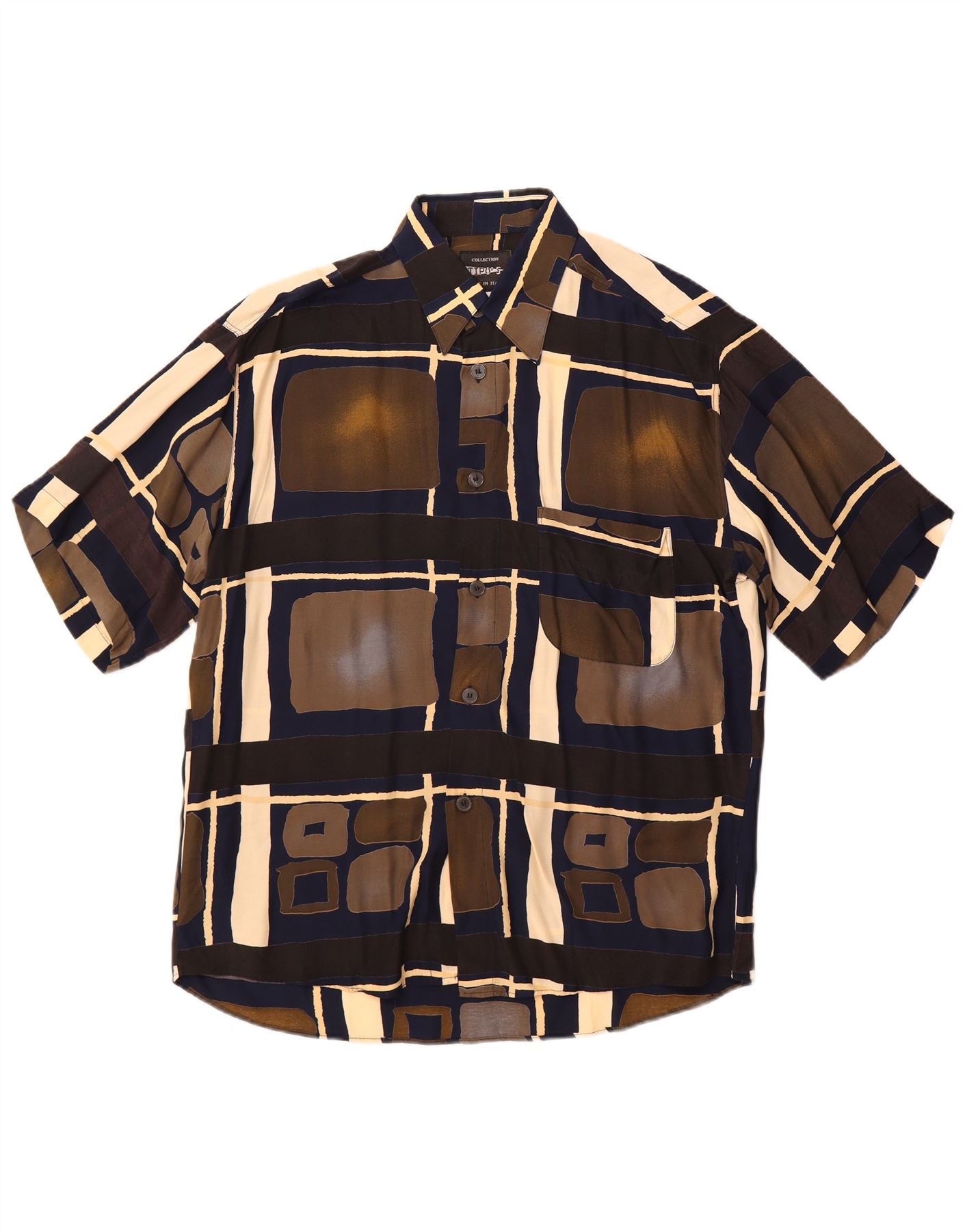 Camisa masculina de manga curta Tipo'S média viscose geométrica multicolorida