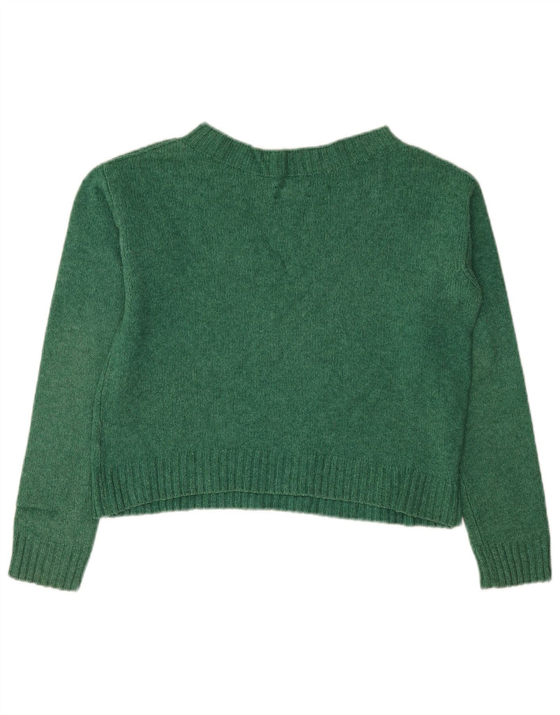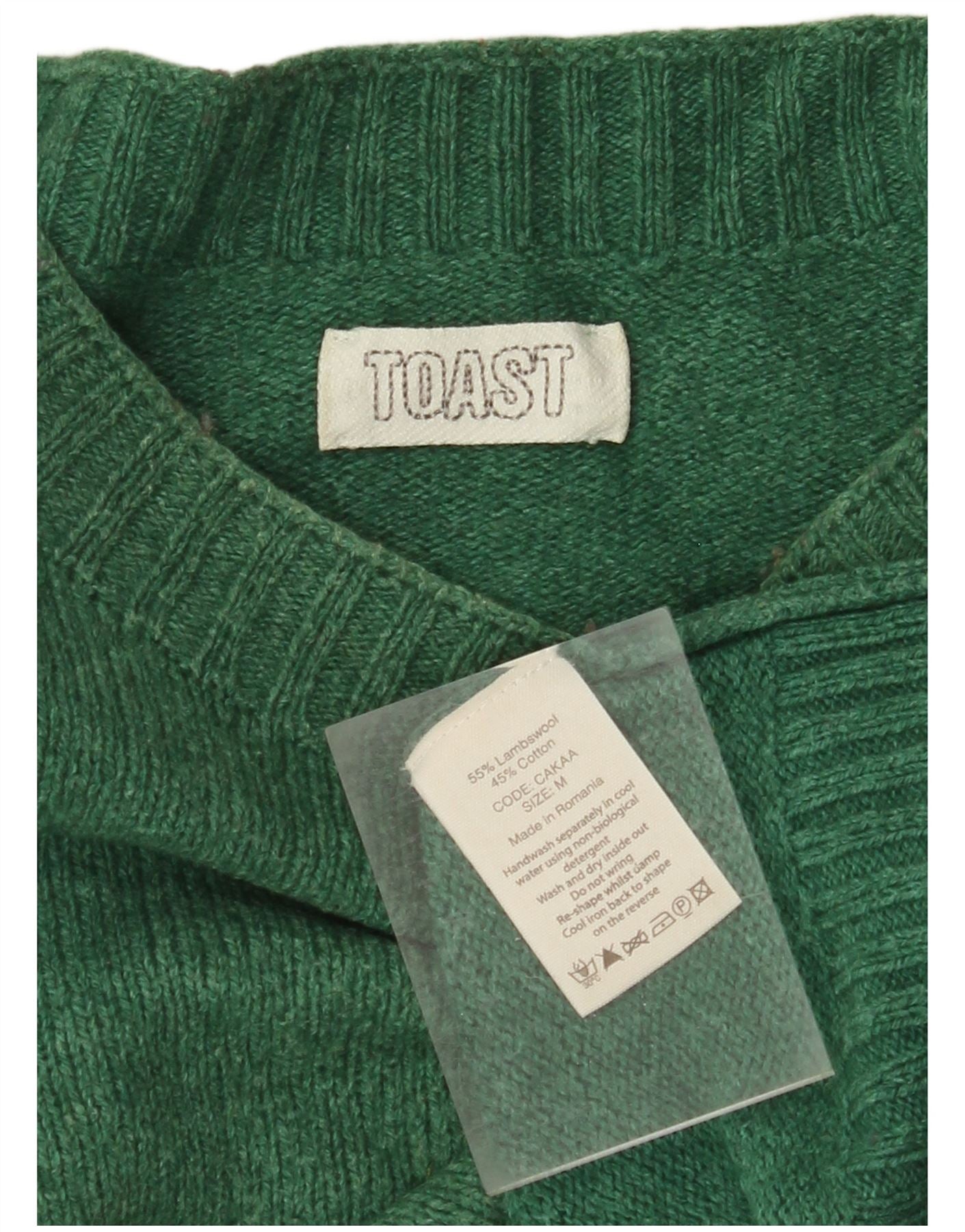TOAST Womens Crop Crew Neck Jumper Sweater UK 14 Medium Green Lambswool