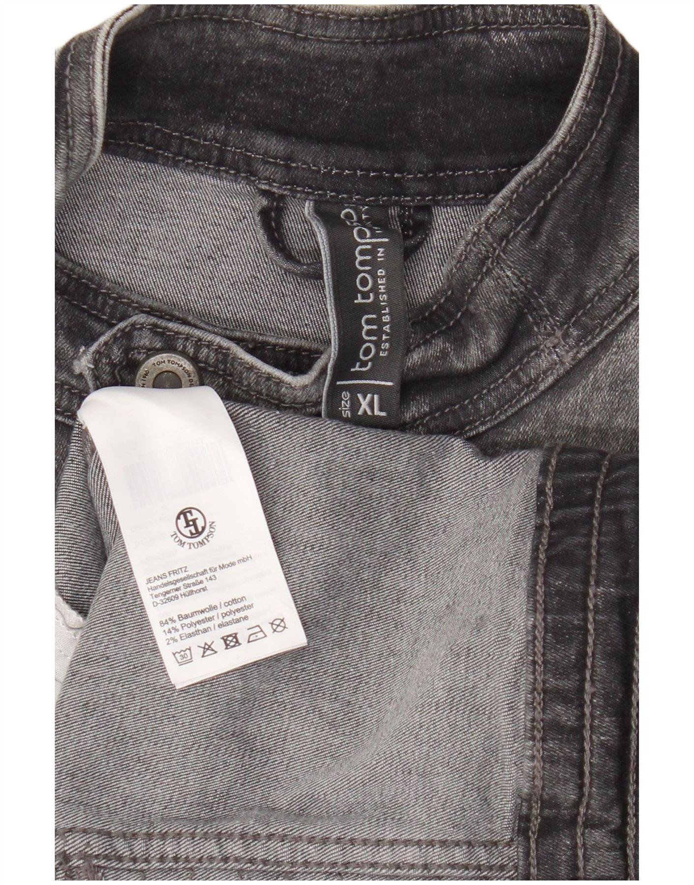 Jaqueta jeans masculina Tom Tompson para motociclista Reino Unido 42 XL algodão cinza